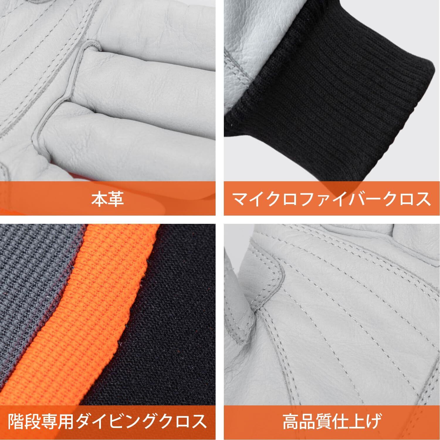 【本革強化パーム】握りやすさと耐久性 手のひら部分に高品質な本革を多層構造で使用。チェーンソーや機械工具の操作時に滑りにくいグリップと高い耐摩耗性を実現。