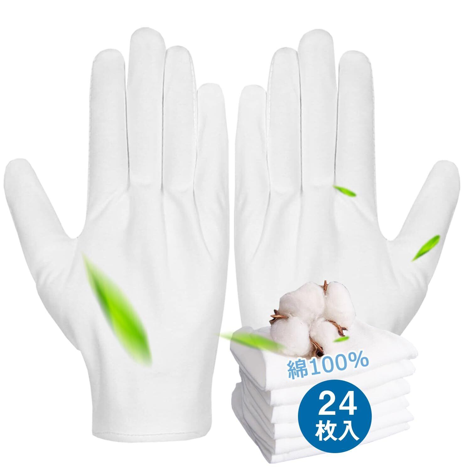 【在庫限り】[YINEEN] 綿手袋 コットン手袋 24枚入 綿100% コトン綿製 メンズ レディース 左右兼用 手荒れ防止 薄手 作業用 検品用 家事用 礼装用 掃除用 乾燥肌用 保湿用