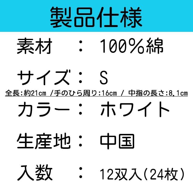【Sサイズ】つばさ Tsubasa スムス 純綿100% 手袋 1袋(12双入) 女性に最適 多用途 作業手袋 検品 品質管理 マチなし Sサイズ