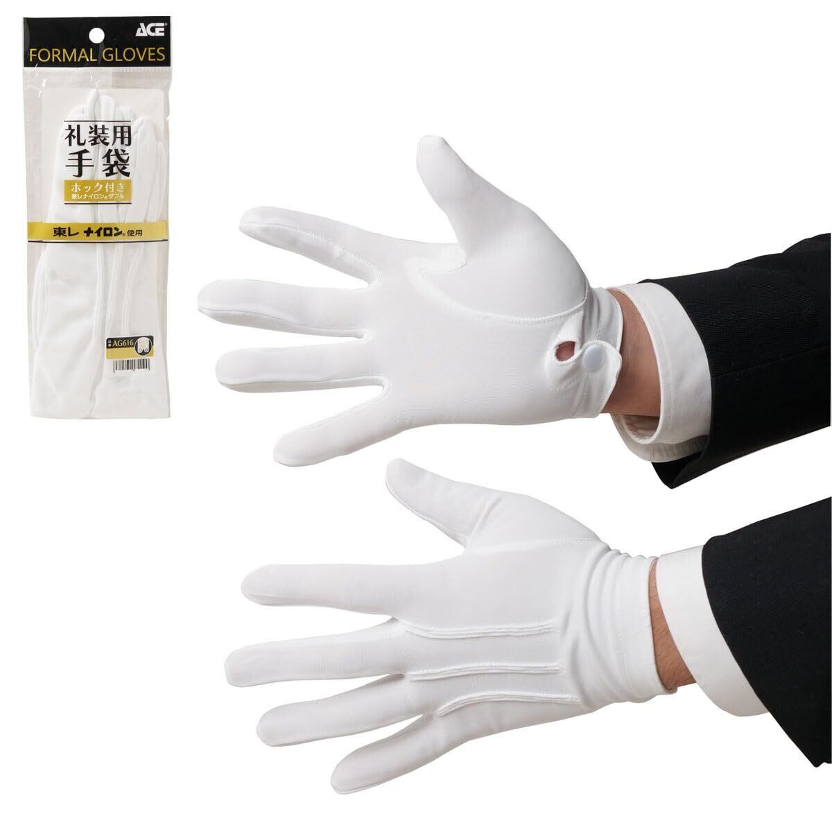 【数量限定】[エース] 礼装用手袋 ホック付 東レナイロン使用 Lサイズ AG616