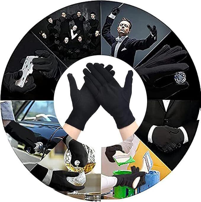 [Ginhkok] 黒手袋 コットン 手袋 インナーグローブ 礼装 男女兼用 バイク用グローブ ジュエリー 薄手 快適 冷感 超軽量 接客用 イベント 業務 運搬 掃除 検査 ドライバー 式典用 運転手 フォーマル 警備 式典用 貴重品 宝石検査 鑑定 品質管理用