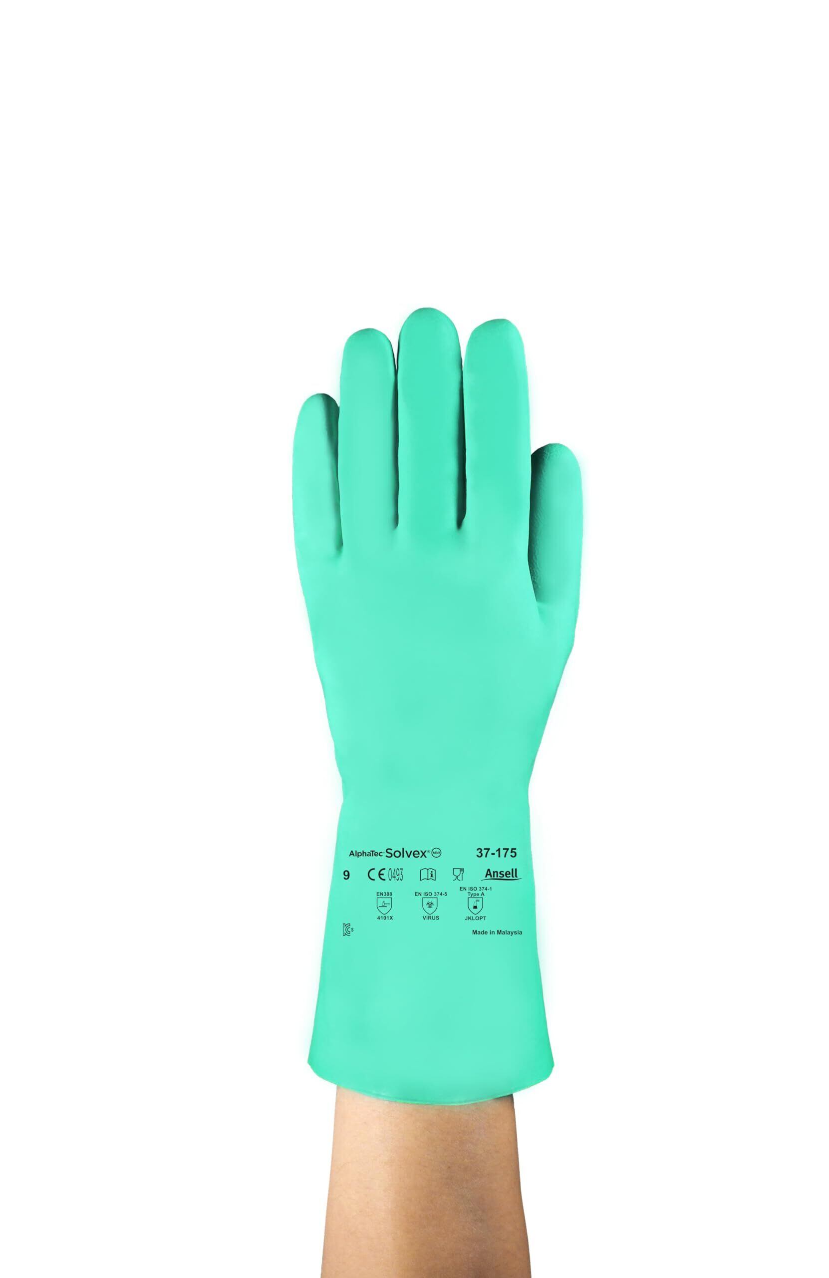 【特価セール】[Ansell] 化学防護手袋 AlphaTec 37-175 XLサイズ ニトリル 厚さ0.46mm 透過データ 耐薬品 作業用 保護 安全 薬品 アンセル アルファテック 37-175-10