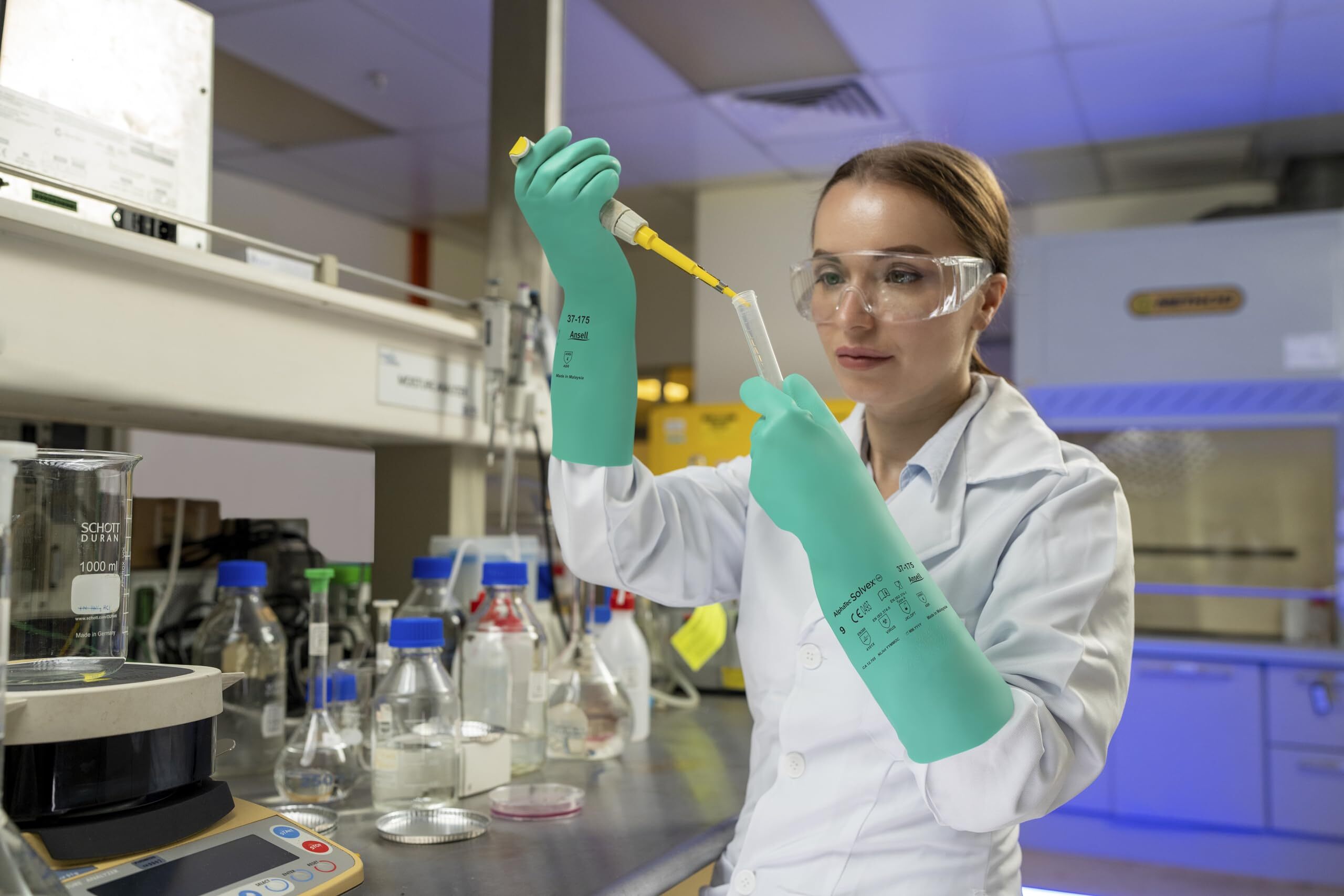 [Ansell] 化学防護手袋 AlphaTec 37-175 XLサイズ ニトリル 厚さ0.46mm 透過データ 耐薬品 作業用 保護 安全 薬品 アンセル アルファテック 37-175-10