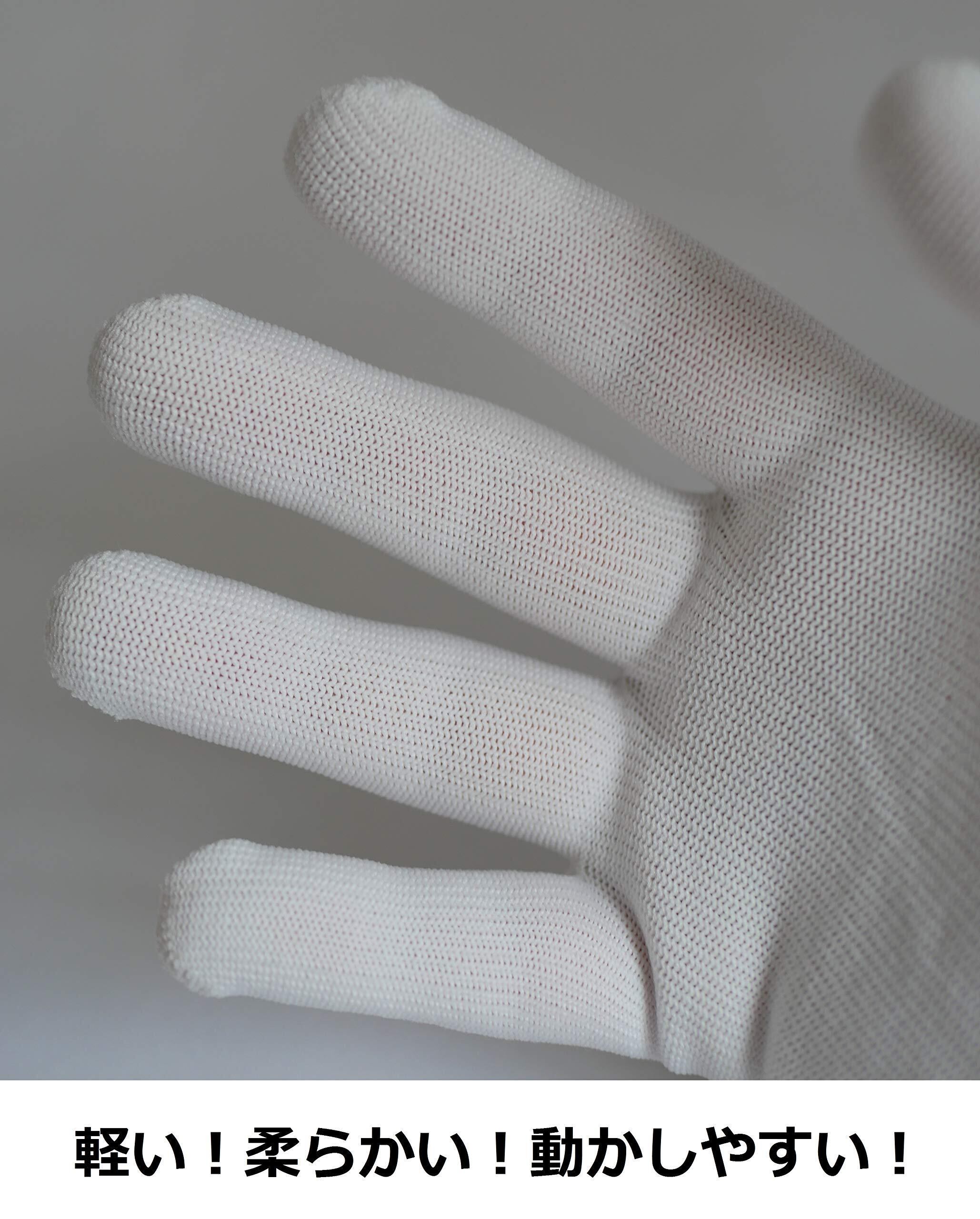 ●体質によっては、かゆみ、かぶれ、発疹等をおこすことがあります。異常を感じたらご使用をおやめください。●高い温度(60℃以上)の品物を持つのは避けてください。火傷をする恐れがあります。また手袋が収縮する恐れがあります。●感電の恐れがあるため、電気作業には使用しないでください。●指先・指股から出ている糸は、切ったり引っ張ったりすると、穴があく原因となることがあります。●回転を伴う機械作業には使用しないでください。●使用後は汚れを洗い落とし、陰干ししてください。●使用後の保管時は、直射日光を避けてください。●溶剤・薬品を伴う作業では使用しないでください。●乾燥機のご使用はおやめください。
