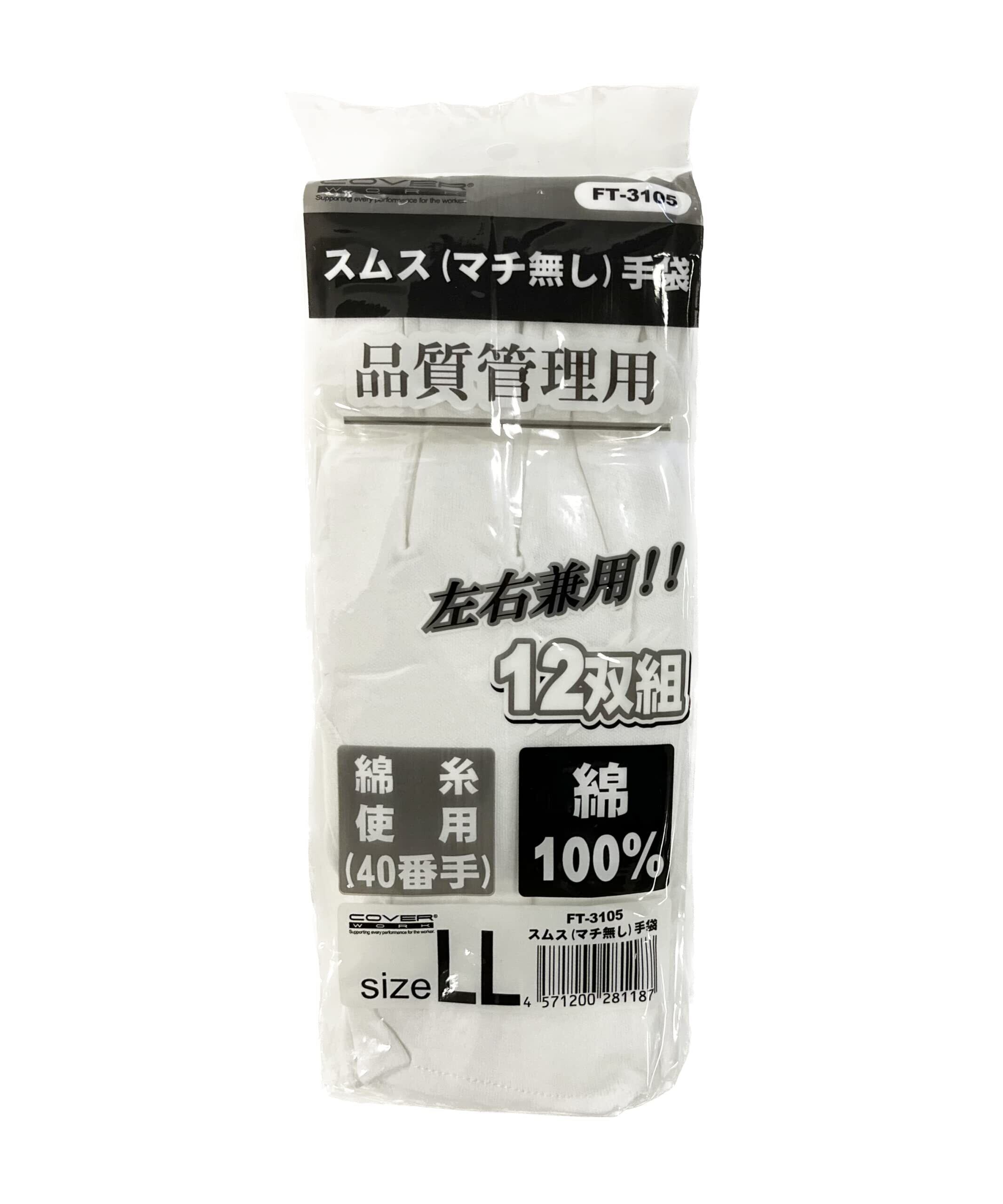 布施商店 COVER WORK 40スムス手袋(マチなし) 12双組 LL 白 FT-3105