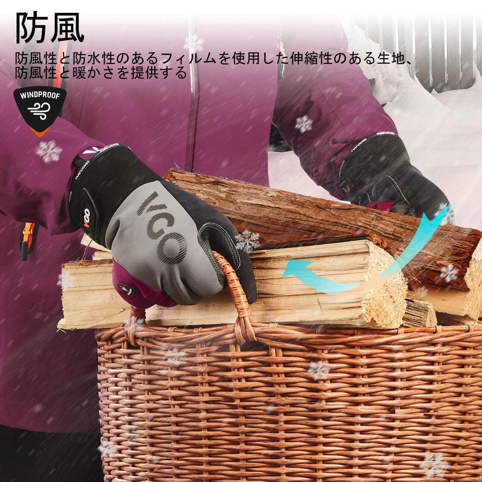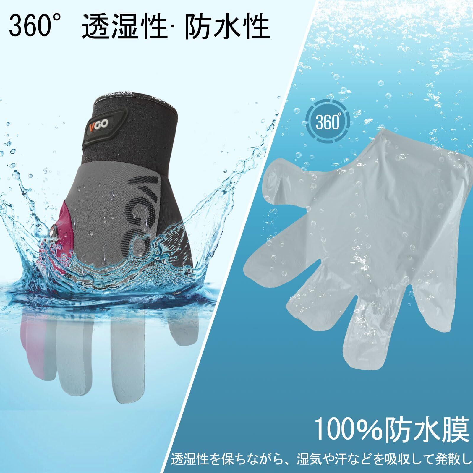 【360°透湿性と防水性と6層構造で-20℃までの耐寒性】Vgo手袋は防水性と透湿性を兼ね備えたTPU防水袋と3Mシンサレート高機能中綿素材とC100断熱ライニングを採用、手をドライで暖かく保ちます。