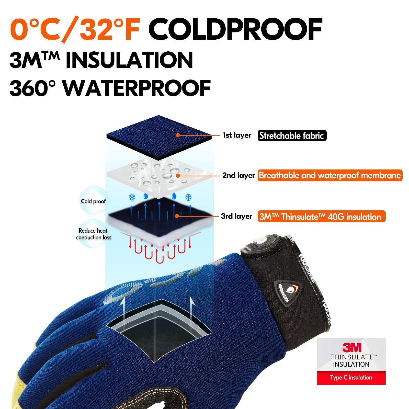 【多用途手袋】男性防水作業手袋、メンズ作業手袋タッチスクリーン。低温作業手袋。自動車業界、電動工具、オートバイク、公共事業労働者、通常の建築、物流、倉庫、運転、森林、木工、牧場、景観美化、園芸、採集、キャンプ、手作り工具、DIY重作業に最適で、より高い保護が必要