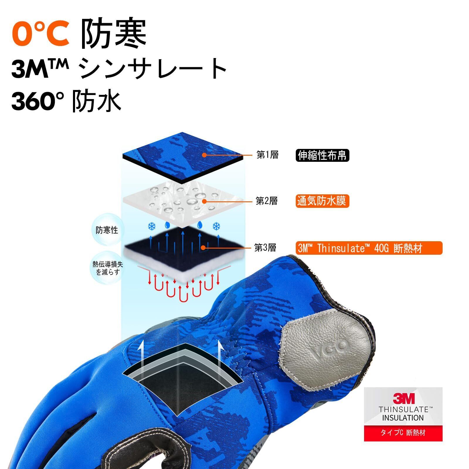 【特別価格】[Vgo...] 0℃防寒革手袋 3Mシンサレート 裏起毛 牛革手袋 タッチパネル対応 防寒防水 作業手袋防風冷凍庫グローブ サイクリング保温 冬厚手CA9790FLWP(ブルー,L)