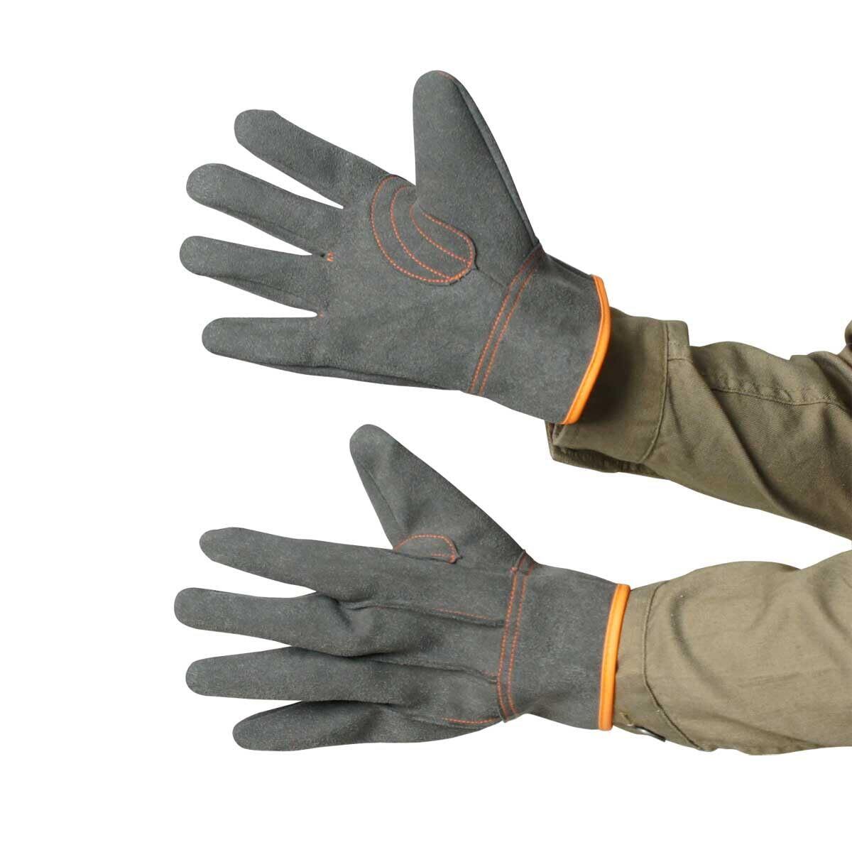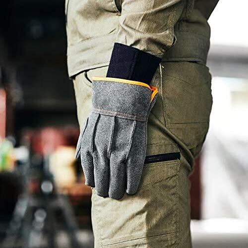 ハードワークに最適な天然皮革に迫る手袋、人工皮革「カワテック」。天然比較に比べ安定した品質で、装着時に粉がつかない爽やかなはめ心地です。洗濯できるので、長期間清潔に使用できます。グレーの手袋にオレンジのバイアステープがアクセントに! ぜひ一度この使い心地のよさを実感してください。