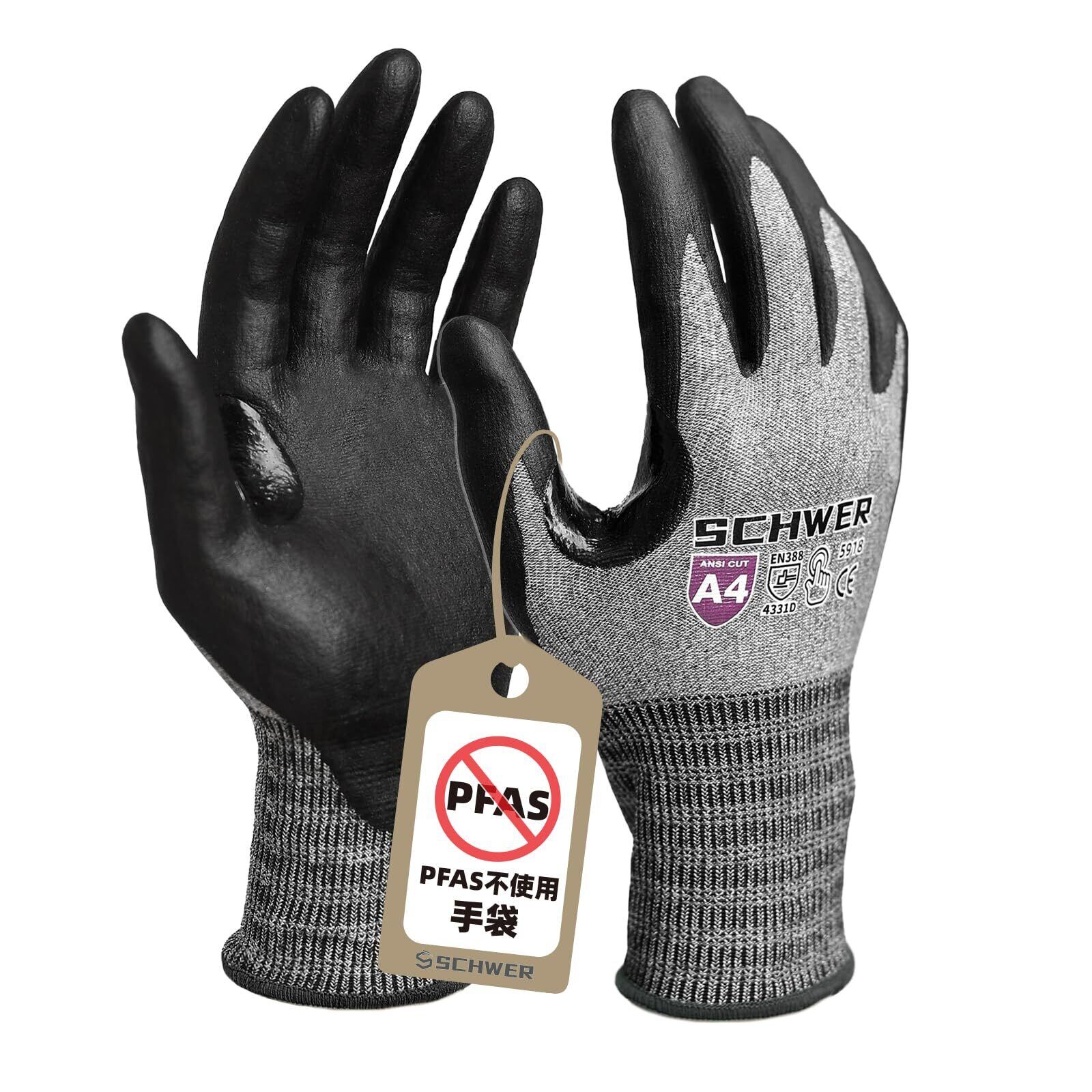[Schwer] AIR-SKN 防刃手袋 【耐切創性とフィット感を両立】 超軽量超薄型 レベルD耐切創手袋 防刃 作業用 防災 耐摩耗 耐引き裂き コーティング付き 滑り止め 手袋 軍手 災害 現場 工場 DIY アウトドア タッチスクリーン PFASなし 3 D快適フィット 通気性 大口注文歓迎