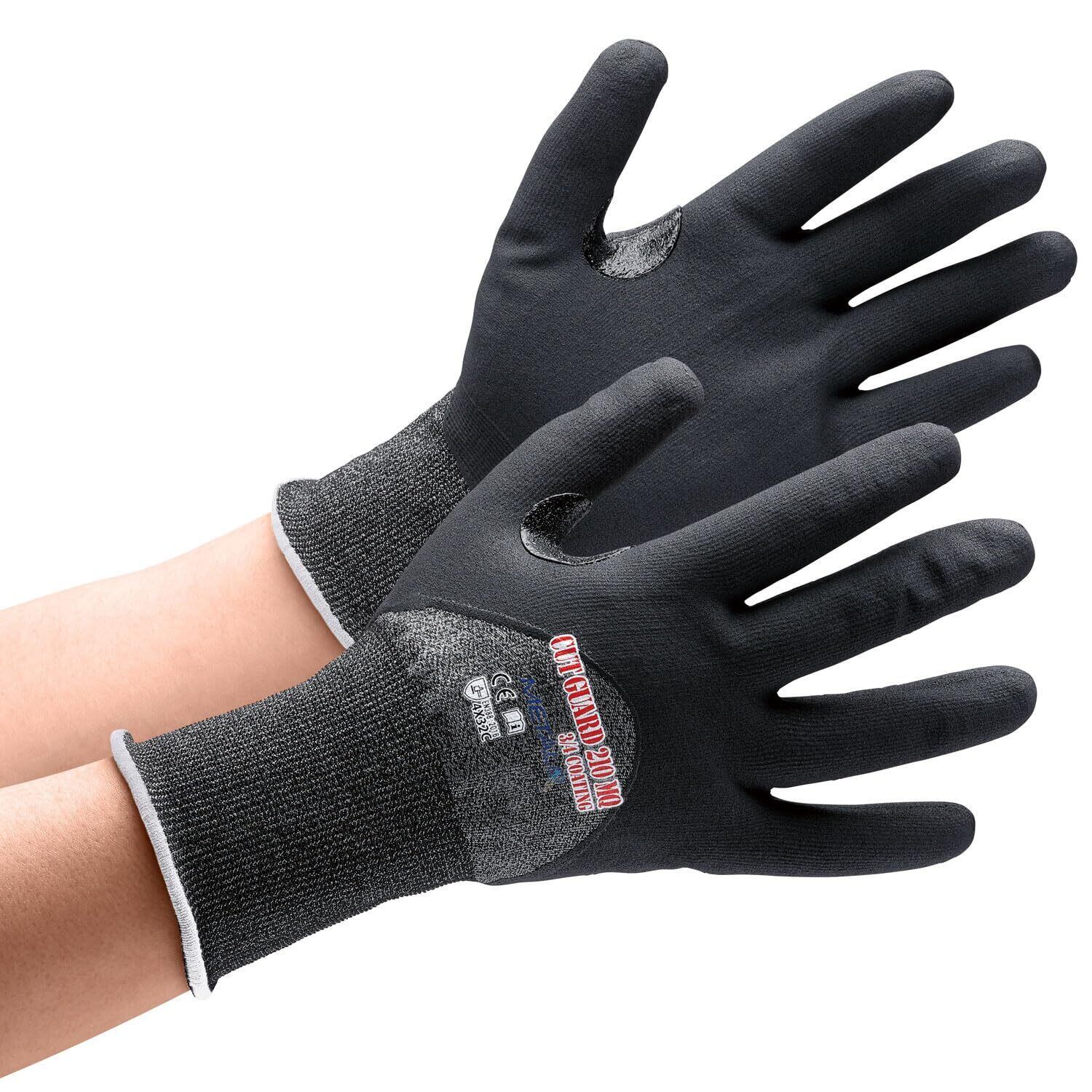 [特長] ●ポリエチレン繊維と鉱物の配合で、21ゲージという極薄手ながらカットレベルCを実現。 ●親指と人差し指の指股部分をニトリルで補強し、装着したままタッチパネルが操作できます。 ●通気性のあるコーティング「エアーフィニッシュ」を搭載。 ●親指股補強付き ●手のひらと、拳側までニトリルをコーティング。