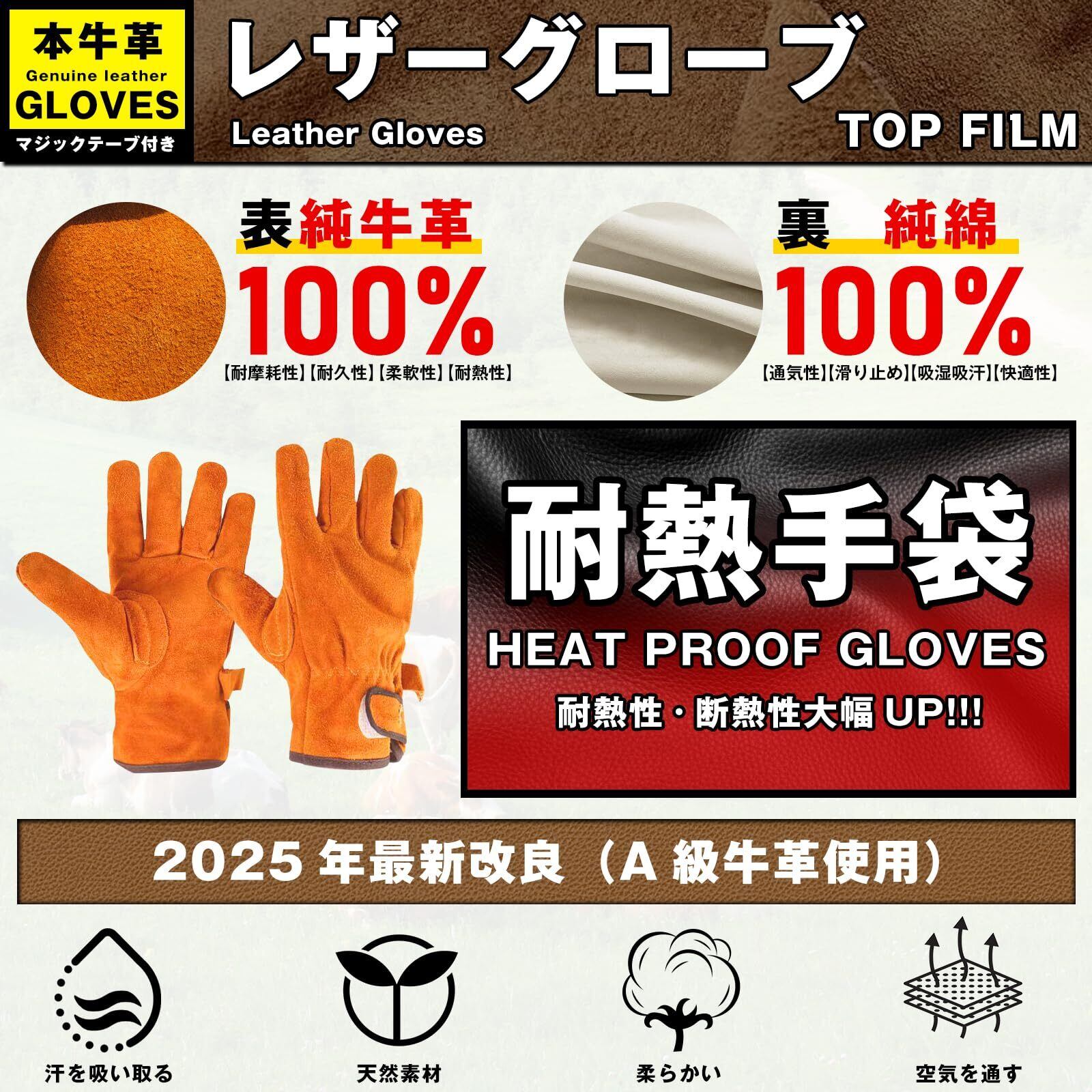 【 本革耐熱 グローブ】 素材自体が柔らかく、快適な上に断熱でもある高機能な耐熱手袋です。お洒落なカラーがヤル気にさせる耐熱グローブで日常が楽しくなります!薪ストーブやBBQ、アウトドアに最適な薪を運ぶ、くべる、着火後に組み直すなどヘビーデューティーな使い方から、また陶芸の窯出しや、高温になる愛車の手入れなど趣味の時間にもお使いいただけます。