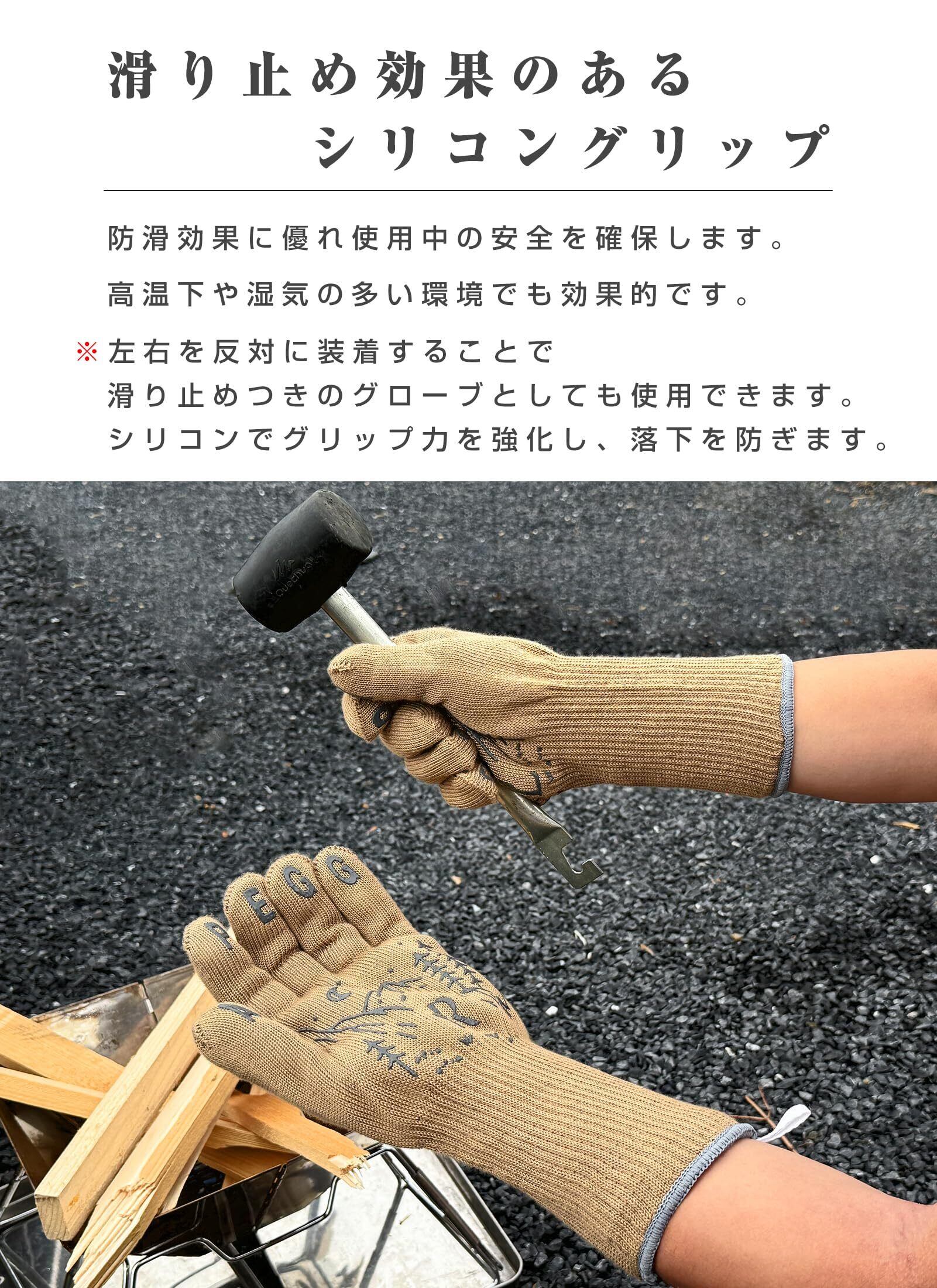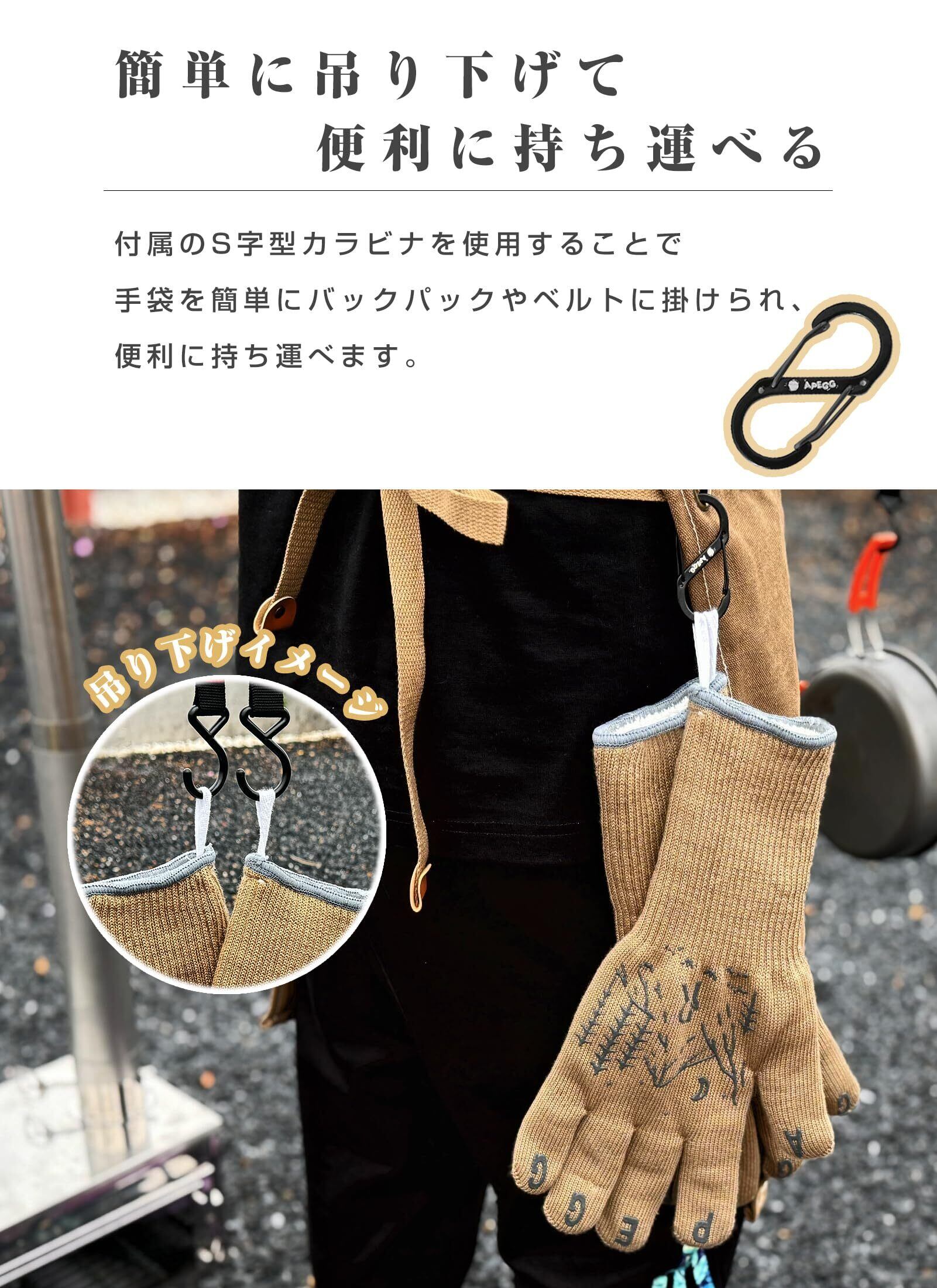 [APEGG] 耐熱グローブ 最高耐熱500℃ 5本指 アウトドア ミトン 手袋 滑り止め 防寒 耐磨耗 キャンプ BBQ 焚き火 登山 鍋掴み 園芸用 作業用 料理 グリル ガーデニング 付きS字型カラビナ 多用途手袋 左右兼用 男女兼用