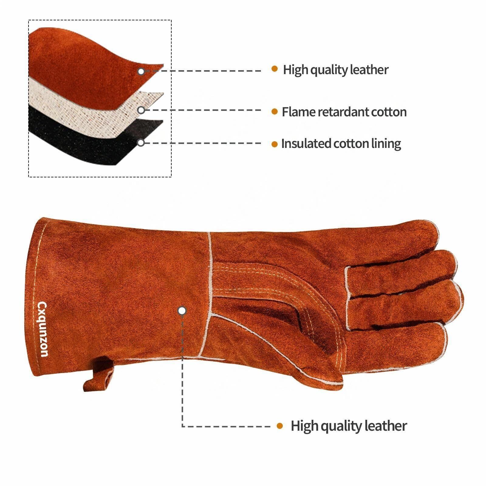 [Cxqunzon] Leather MIG 溶接手袋 - 厚手プレミアム牛スプリットレザー、溶接/グリル/バーベキュー用耐熱性