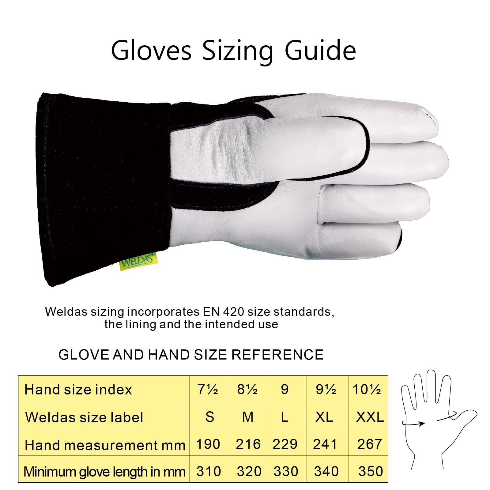 [ARC KNIGHT] Weldas プレミアムMIG溶接手袋、10-2020、ブラック&ホワイト。
