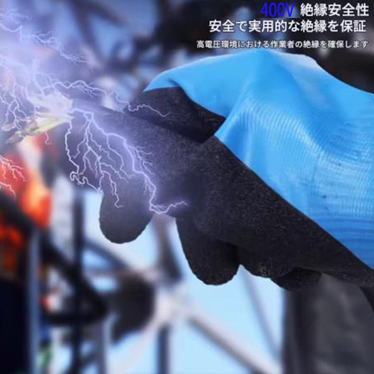 【限定セール】[Fcliqzod888] 400V耐電圧絶縁手袋 電気工事専用(溶接/配線作業対応) 滑り止め強化ゴム製 耐摩耗防水設計 プロ用安全作業手袋 DIYにも最適