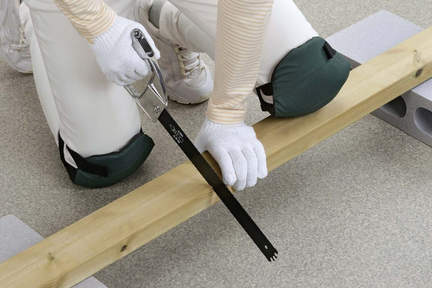 クッション材でひざをガードし、従来品よりもひざの曲げ伸ばしが楽に動かせます。