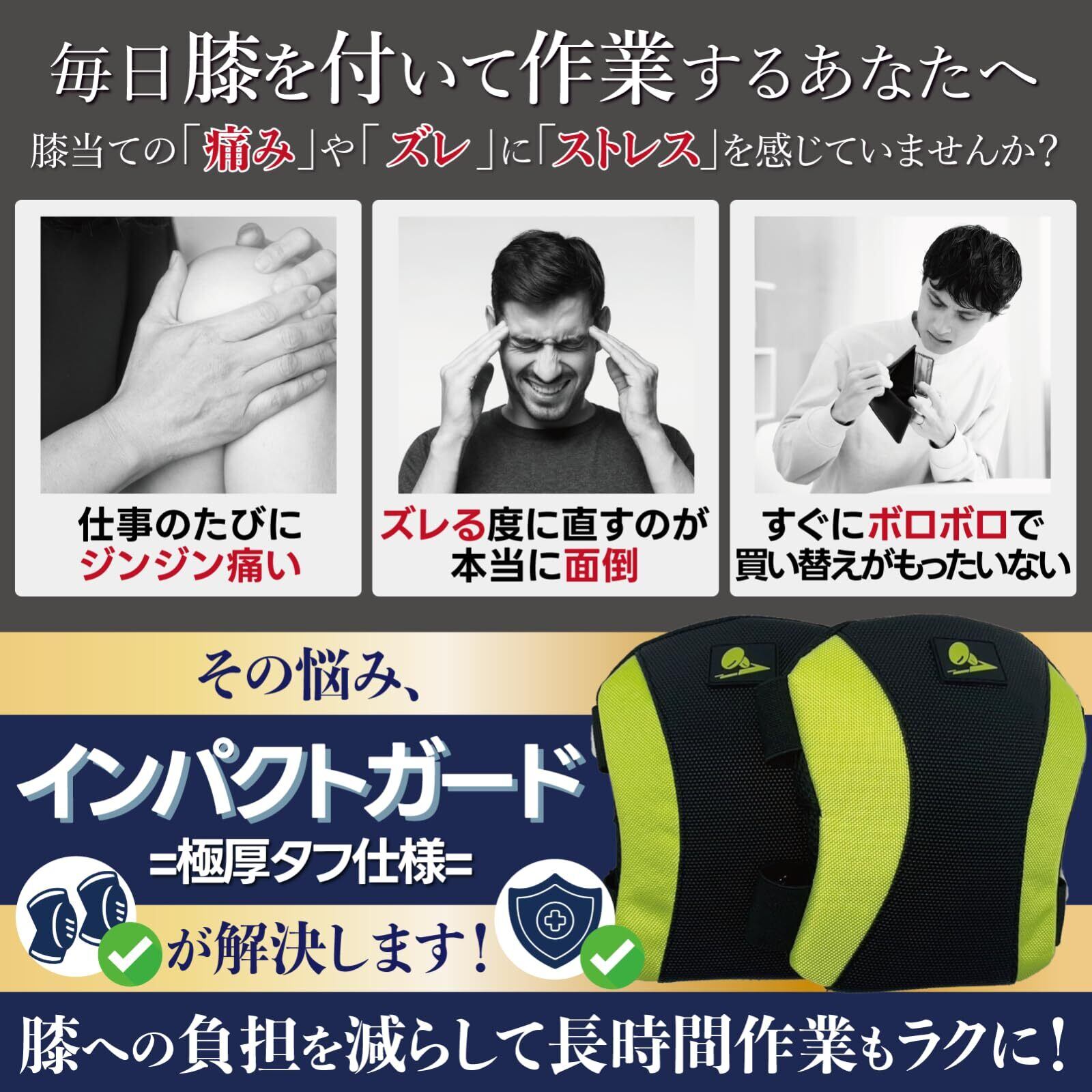 極厚パッドが衝撃を分散し痛みを大幅軽減する膝当てです