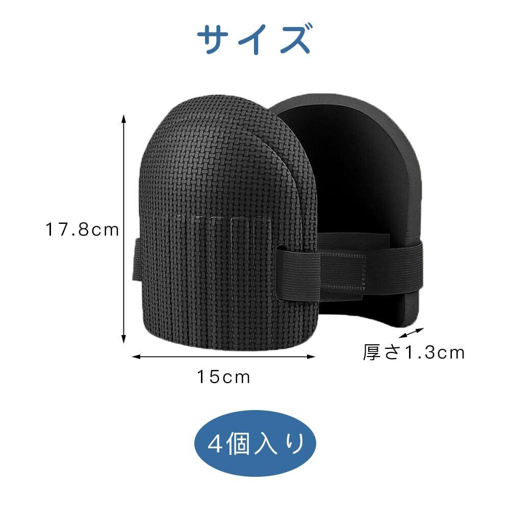 作業用 ヒザパット 4個入り 膝当て 膝パッド 膝ガード ガーデニング用 膝保護具 膝保護パッド ニーパッド 防水 軽量 耐磨耗性 調節可能 工事 園芸 建設 野球 農作業 屋外作業に適用 男女兼用
