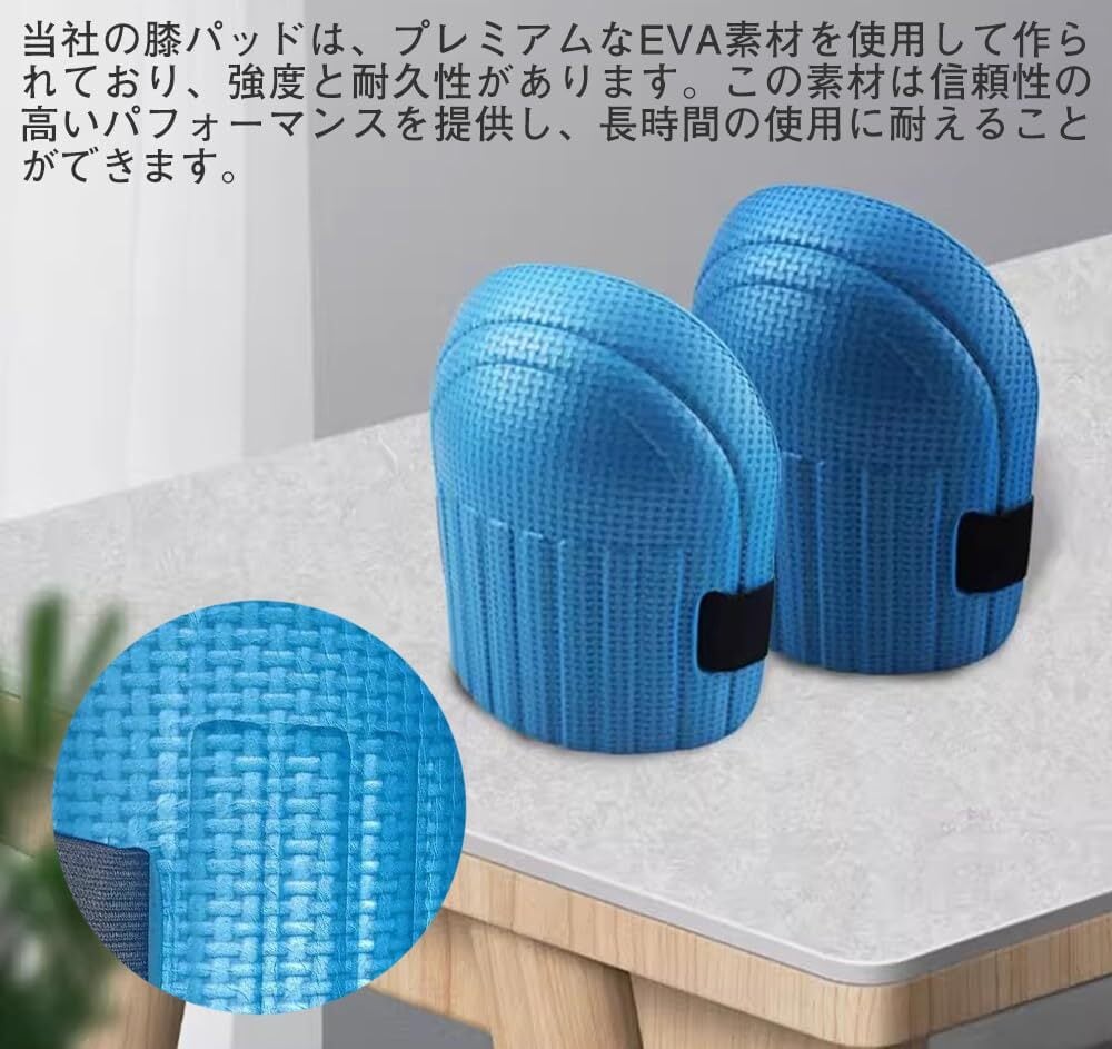 優れた素材:当社の膝パッドは、プレミアムなEVA素材を使用して作られており、強度と耐久性があります。この素材は信頼性の高いパフォーマンスを提供し、長時間の使用に耐えることができます。