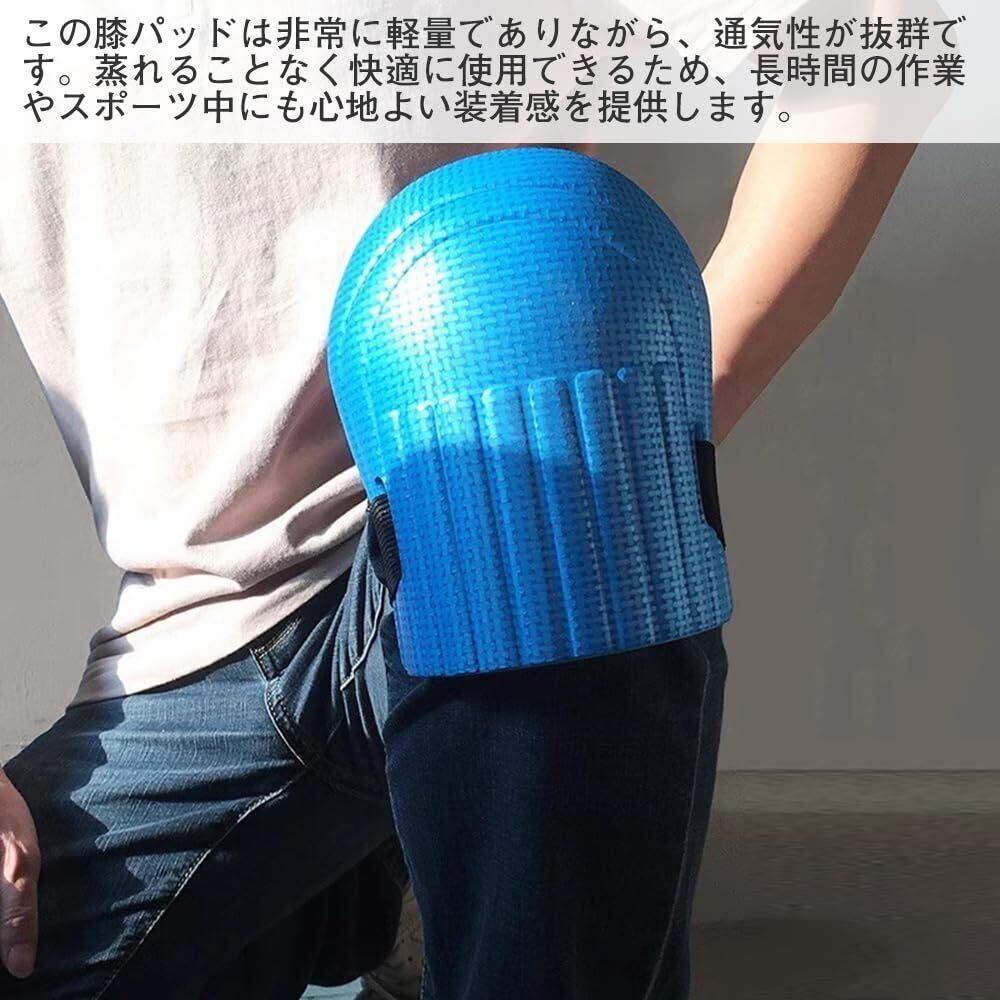 軽量かつ通気性:この膝パッドは非常に軽量でありながら、通気性が抜群です。蒸れることなく快適に使用できるため、長時間の作業やスポーツ中にも心地よい装着感を提供します。