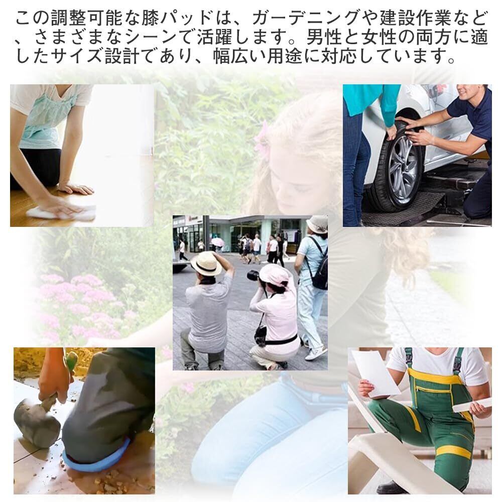 多目的使用:この調整可能な膝パッドは、ガーデニングや建設作業など、さまざまなシーンで活躍します。男性と女性の両方に適したサイズ設計であり、幅広い用途に対応しています。