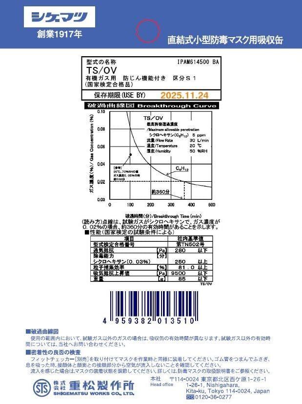 【新着商品】重松製作所(Shigematsu Seisakusyo) (Shigematsu Works) シゲマツ TW用吸収缶 有機ガス用 TS/OV