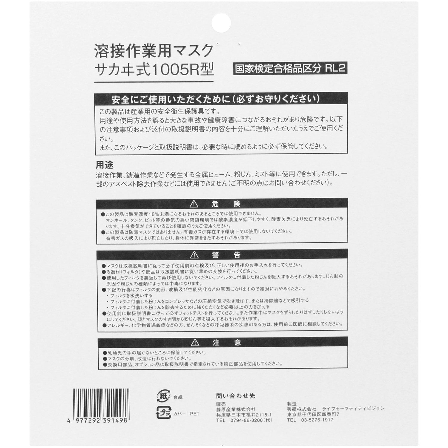 SK11 溶接作業用マスク フィルター交換式 コーケンサカヰ式1005R-08型 国家検定合格品 区分RL-2