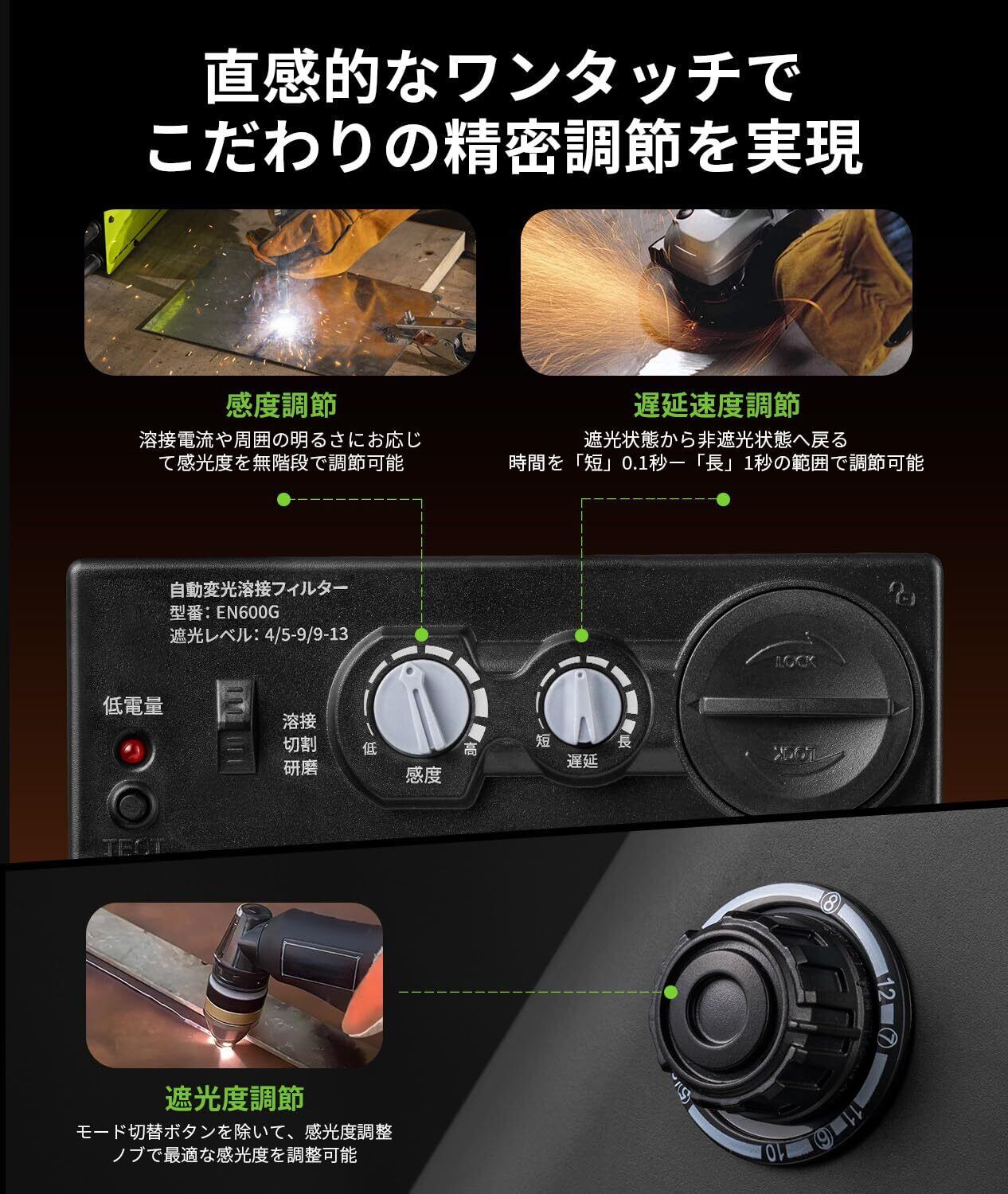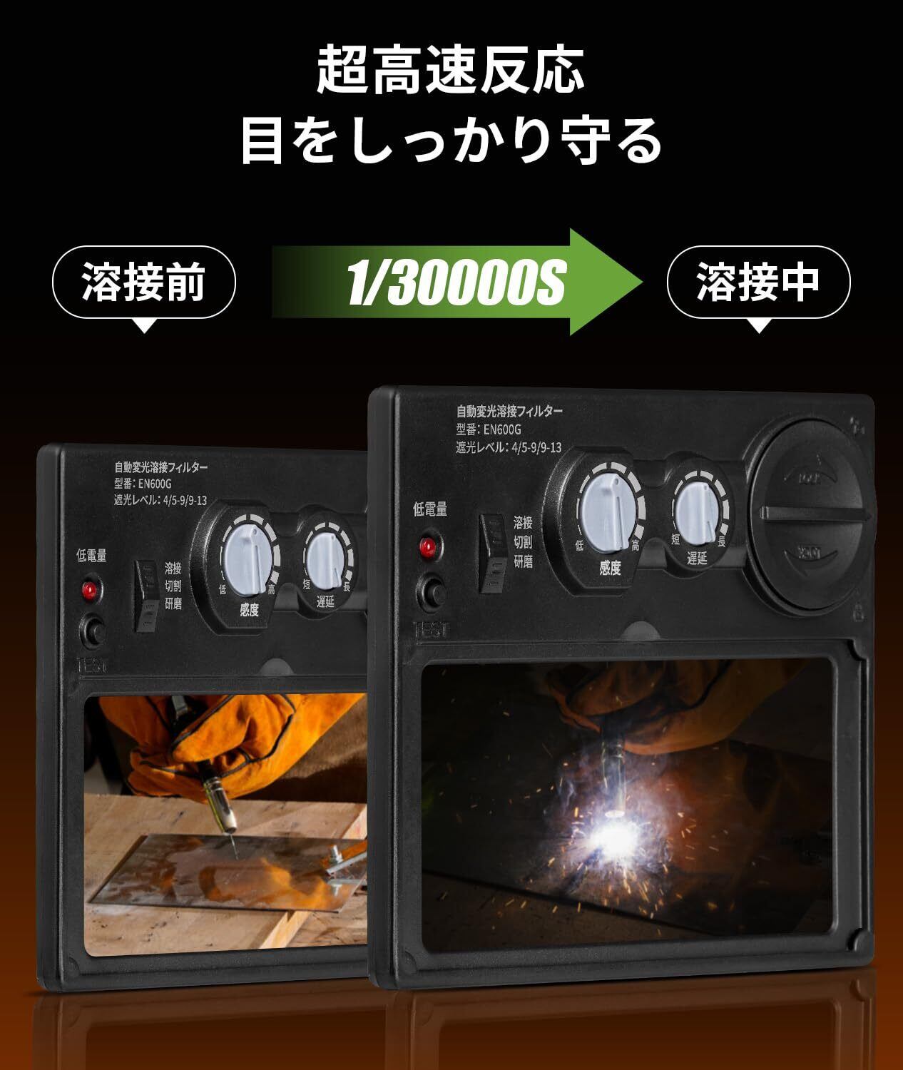 【新着商品】EENOUR 溶接面 新登場 EN600G 自動遮光溶接面 電池交換可能 本当の色を映す 高精細レンズ 鮮明な視界 1/30000S超高速自動遮光 遮光度DIN4/5~9/9~13 ソーラー補助充電 溶接マスク 遮光度・戻り速度・感度調整可能 アーク溶接・TIG溶接・ノンガス溶接・研磨・プラズマ切断に対応 溶接ヘルメット