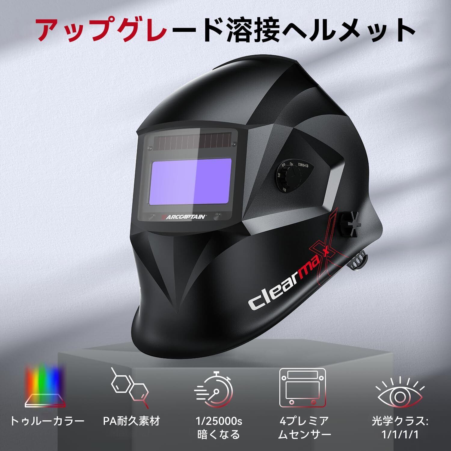 【新着商品】ARCCAPTAIN 溶接面 自動遮光 超軽量 本当の色を映す ソーラーパワー 溶接ヘルメット 溶接マスク 遮光度4/9-13(超高速 1/25,000秒)電池交換可能