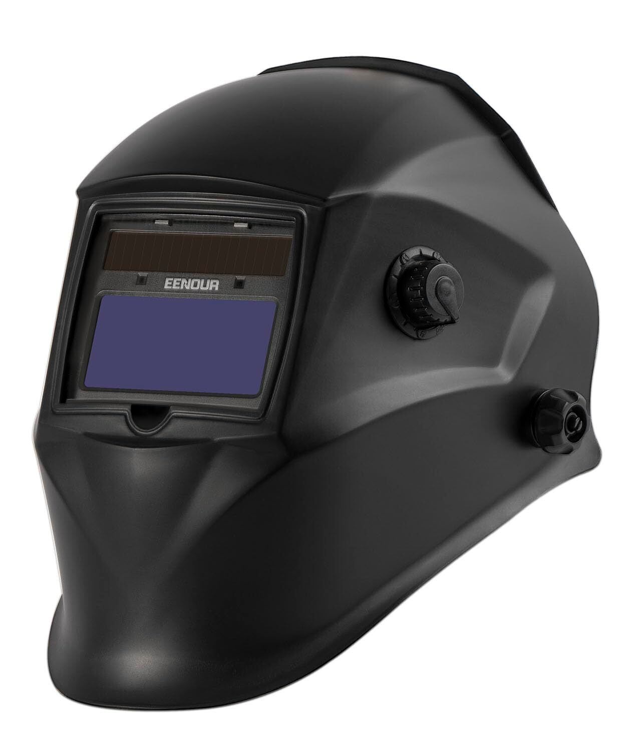 EENOUR 自動遮光溶接面 433E 鮮明な視界 超軽量 電池交換可能 遮光度・戻り速度・感度調整可能 フィット感抜群 ソーラー充電 汗取りパッド付き 保護プレート付属 溶接面 自動遮光 応答速度1/20000秒 遮光度9-13 ノンガス溶接・アーク溶接・TIG溶接・切断などに対応 黒 頭囲:約59-66cm