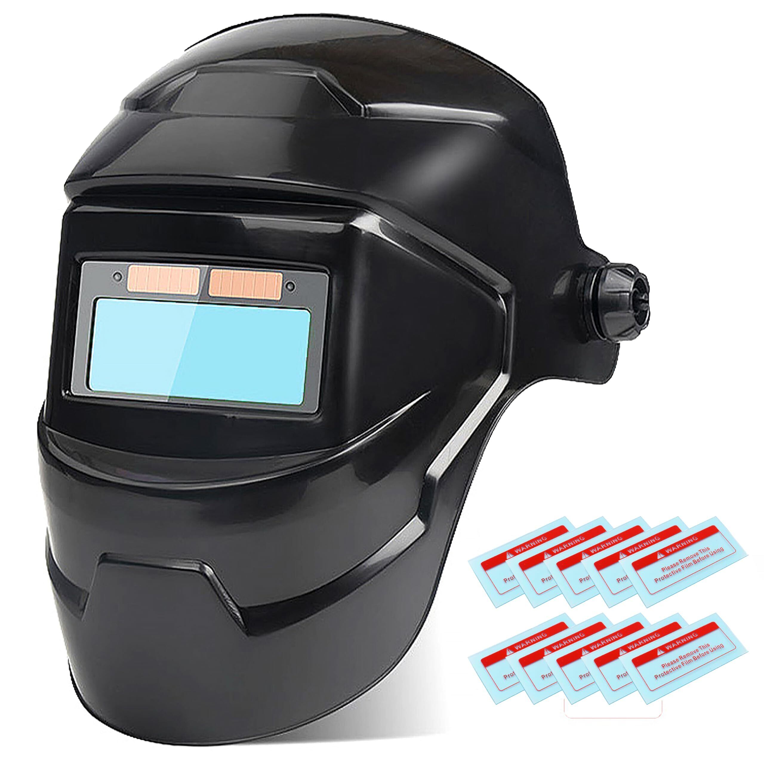 【人気商品】自動遮光溶接面 溶接マスク 溶接ヘルメット 本当の色を映す 自動遮光 ソーラーパワー 最大遮光速度0.00003秒 研磨 プラズマ切断に対応 自動車産業 建築 製造業 DIY 保護用フィルムー10枚