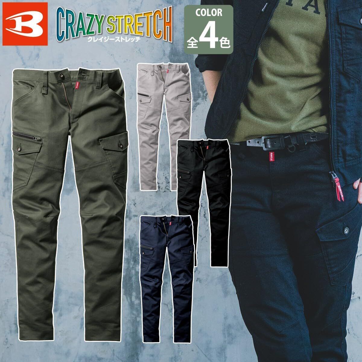 【2025最新】秋冬 バートル BURTLE カーゴパンツ 5022 クレイジーストレッチ ワークユニフォーム メンズ レディース ユニセックス 作業服 作業着《005-5022-ストラップ》