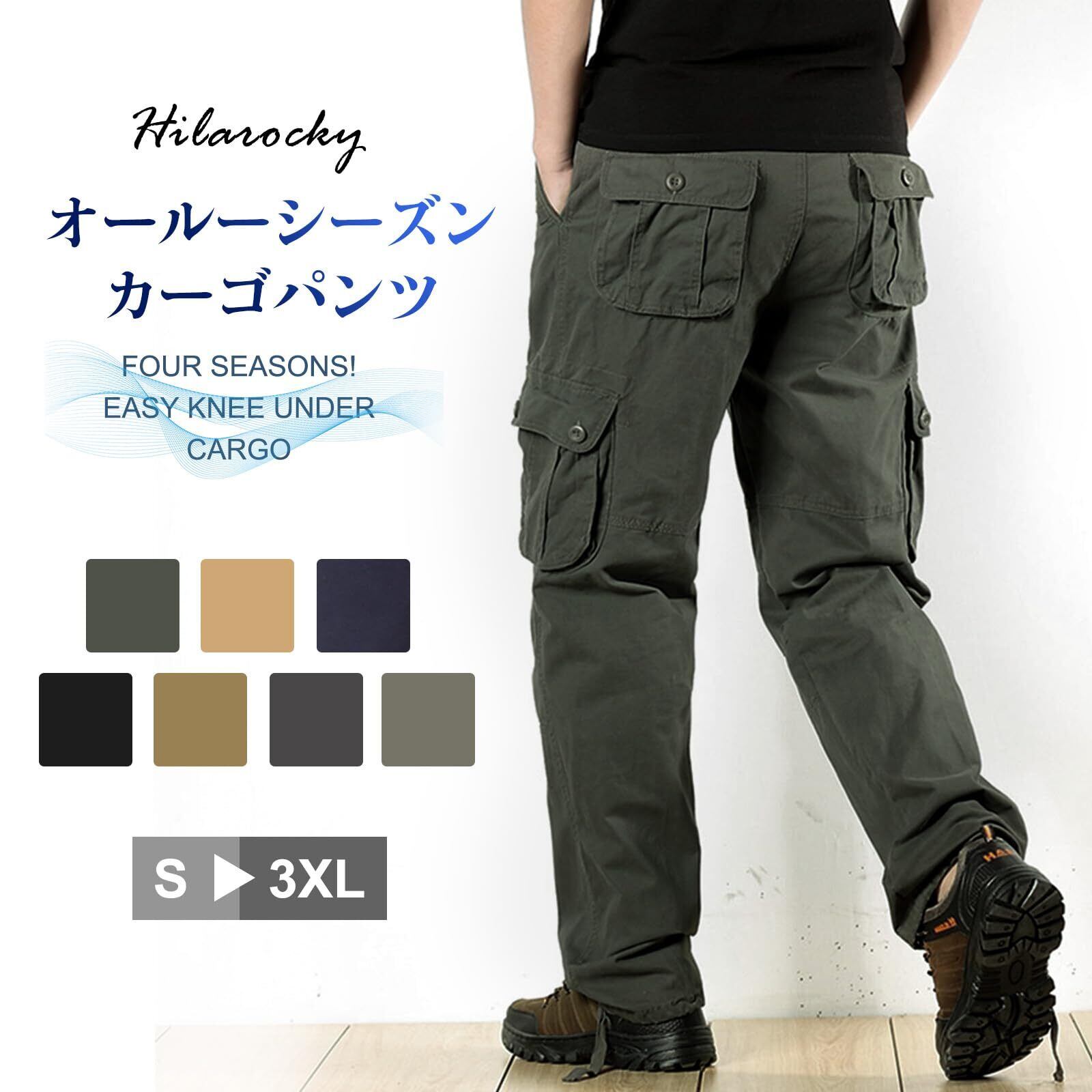 【在庫限り】[Hilarocky] カーゴパンツ メンズ ズボン ワークパンツ ゆったり 大きいサイズ 多機能 ロングパンツ 綿 無地