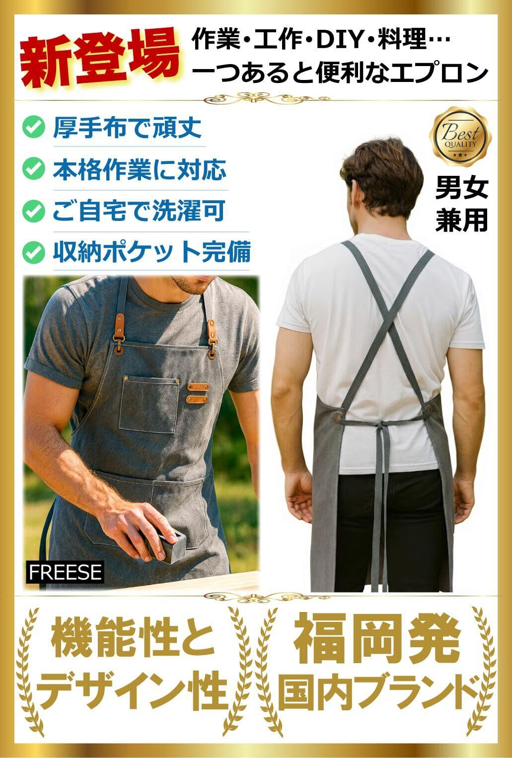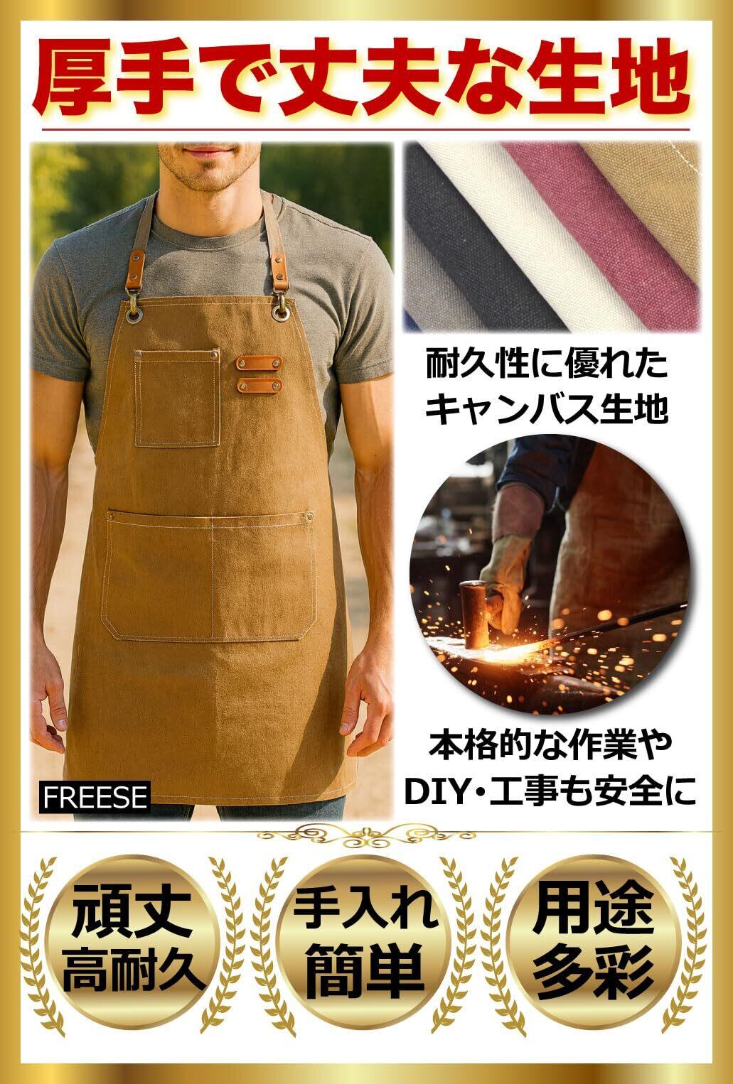 【新着商品】[FREESE] アウトドア エプロン メンズ キャンプ 作業 DIY 職人 シェフ ワークエプロン 前掛け 厚手 綿 キャンバス