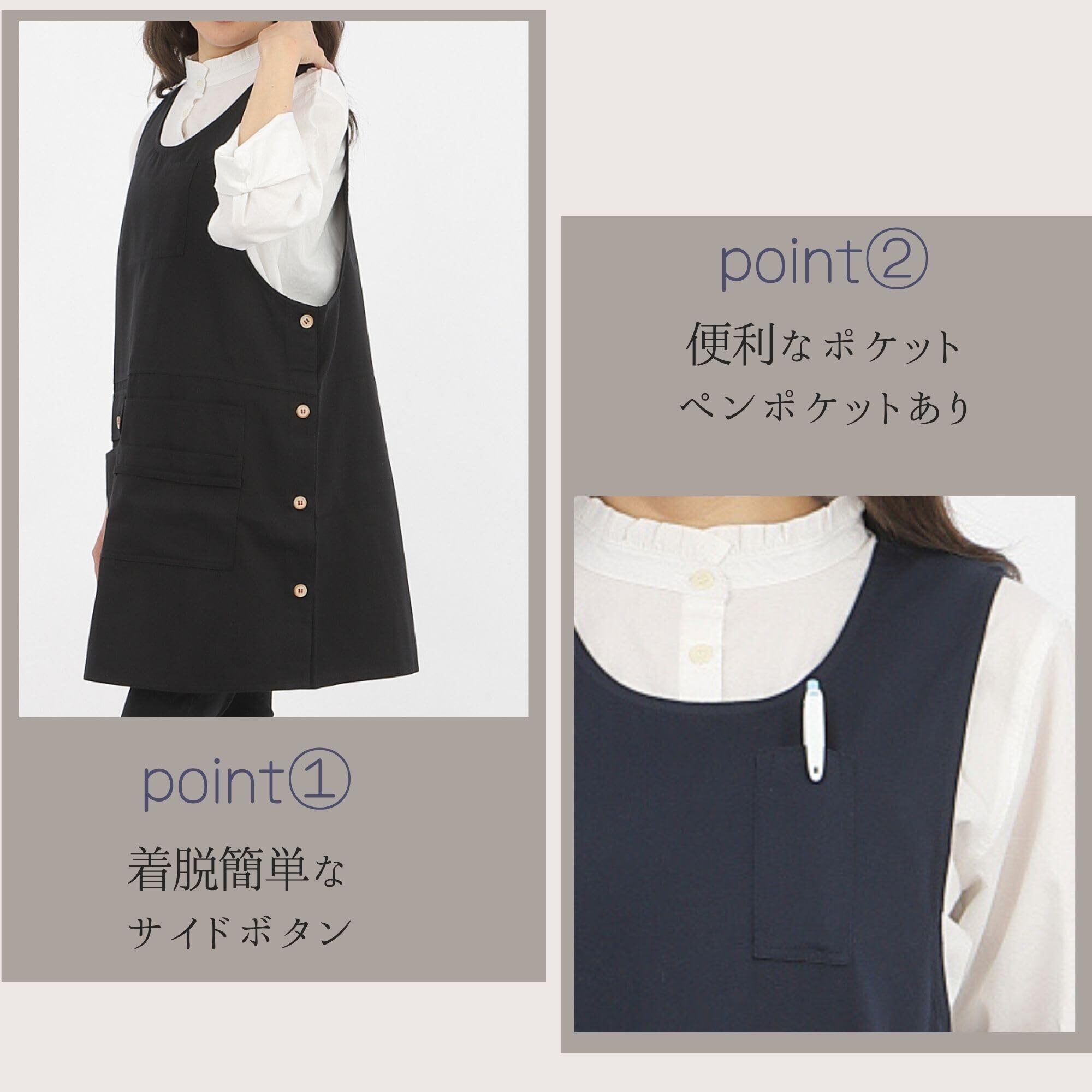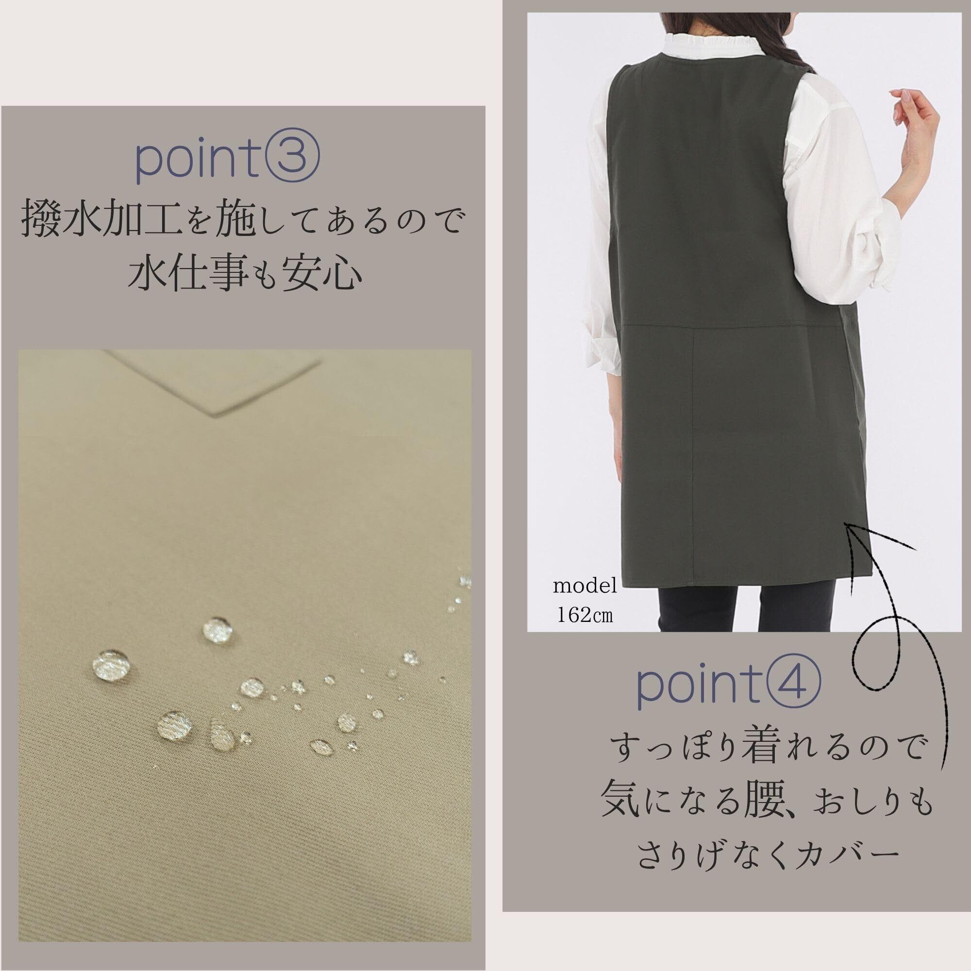 サイドボタン エプロン M~L LL~3L 撥水加工 無地 レディース 大きいサイズ k1048