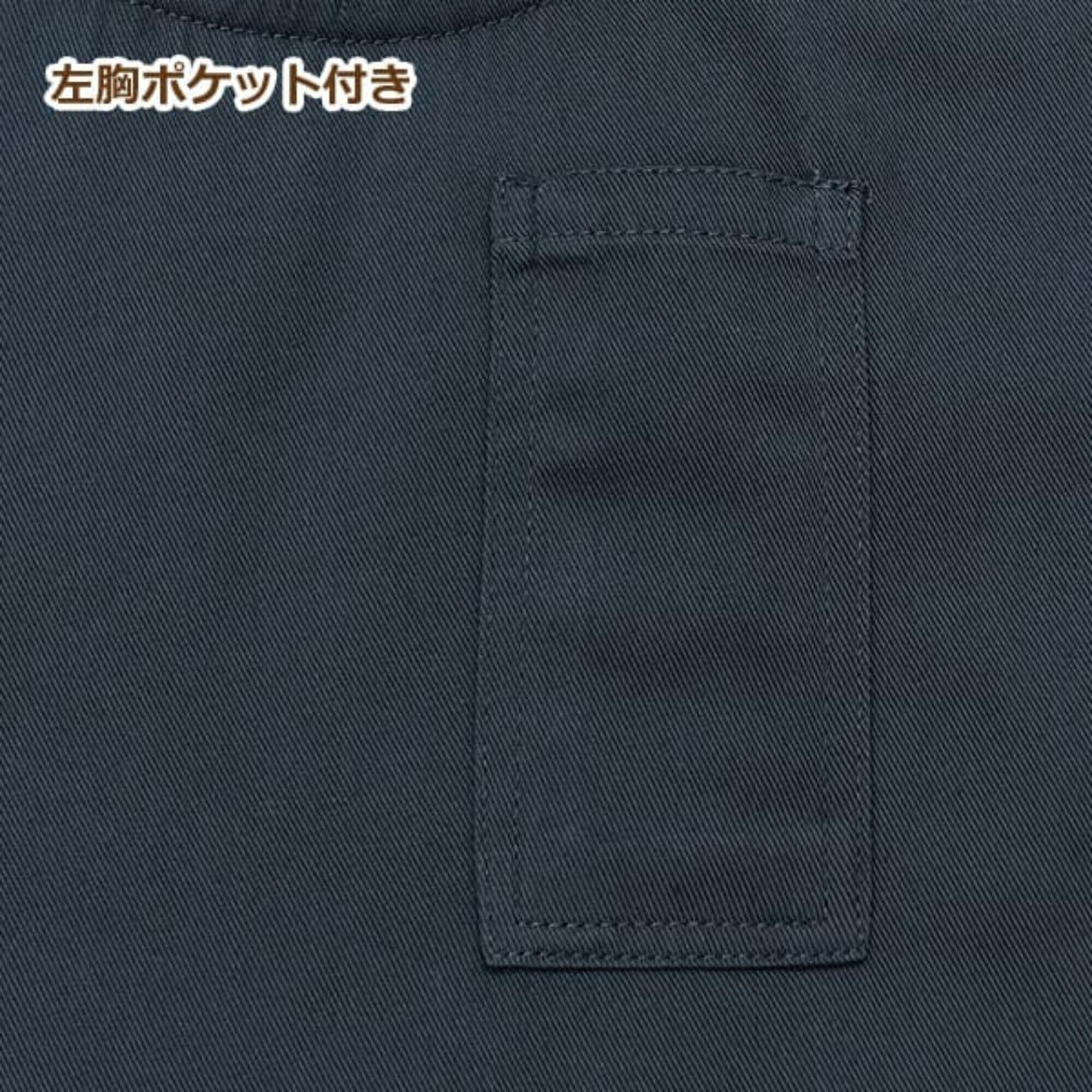 ポケットは左胸(ペンポケット)と中央に仕切りのある二段ポケット付き。タオルなどを掛けられるループも付いています。