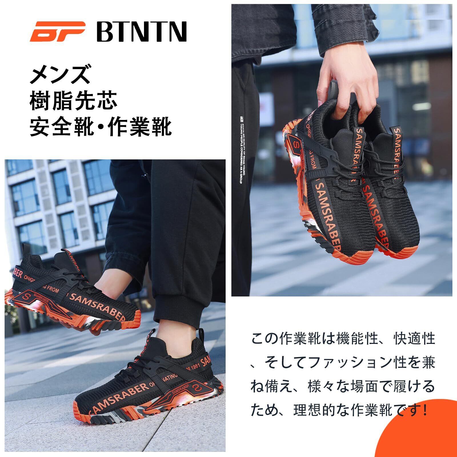 [BTNTN] 安全靴 作業靴 メンズ 樹脂先芯 つま先保護 滑り止 釘踏み抜き防止 ワークシューズ 通気性 軽量 耐摩耗 セーフティーシューズ あんぜん靴 工事現場 3E