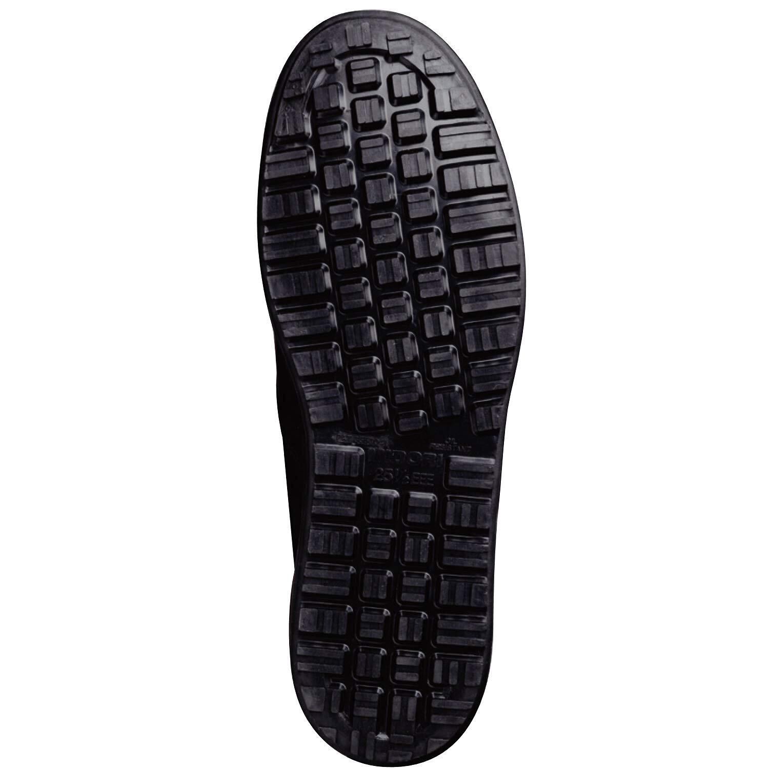 ●耐滑底(最高レベル)+スリップサイン:最高レベルの耐滑性。油や水などで特に滑りやすい床面での作業に適した滑りにくい靴です。靴底には目視でわかる3ヵ所のサイン付きです。
