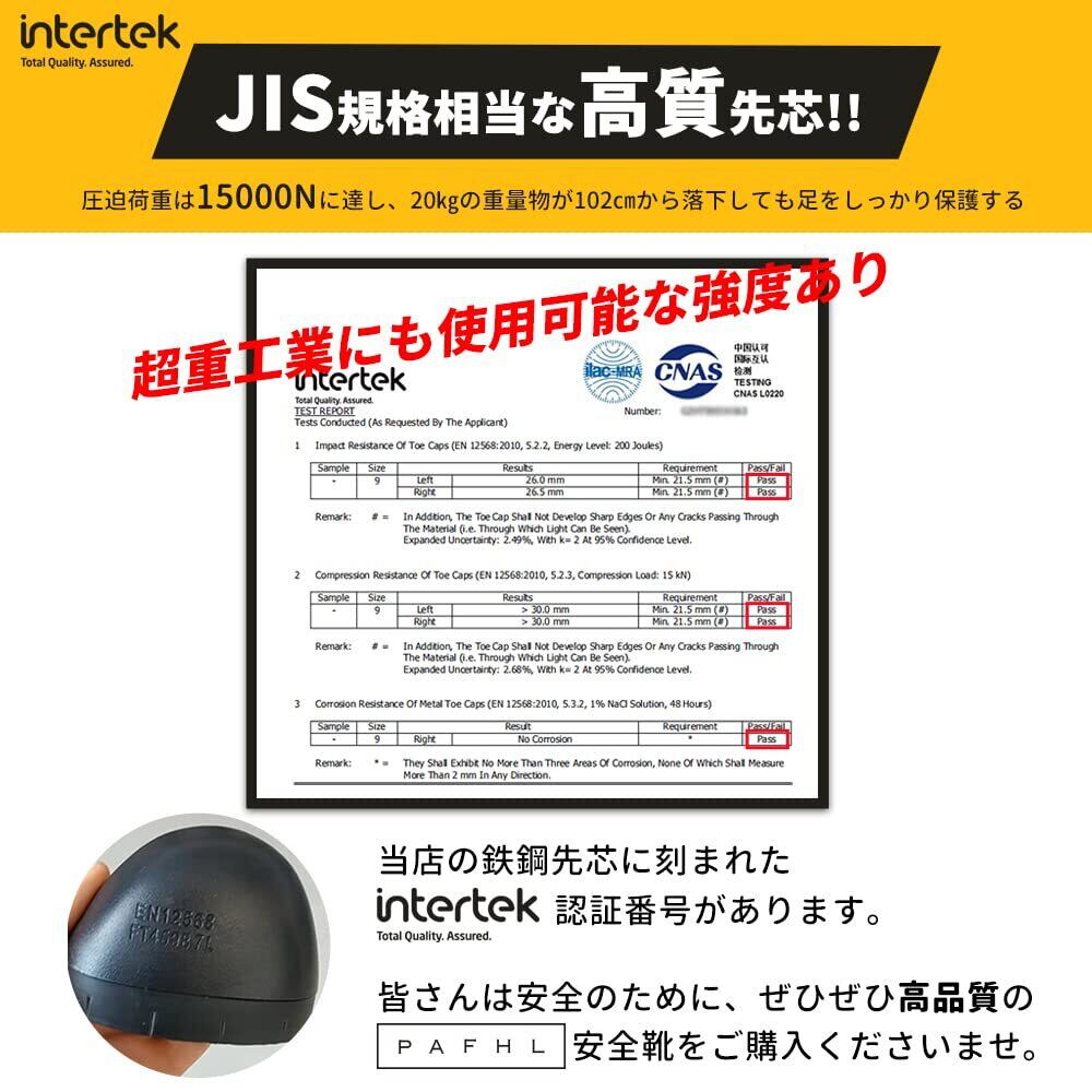 【鋼先芯・つま先保護】:のハイカット安全靴ブーツは鋼製先芯入りで、金槌の衝撃や刃物の落下など作業中の事故からつま先をきちんと保護できます。JIS規格相当、intertek認証に合格した高品質の先芯を採用!15000Nの圧迫力に耐え、超重工業にも使用可能な強度あり!材質の防寒保温性があるので、冬でも履ける!
