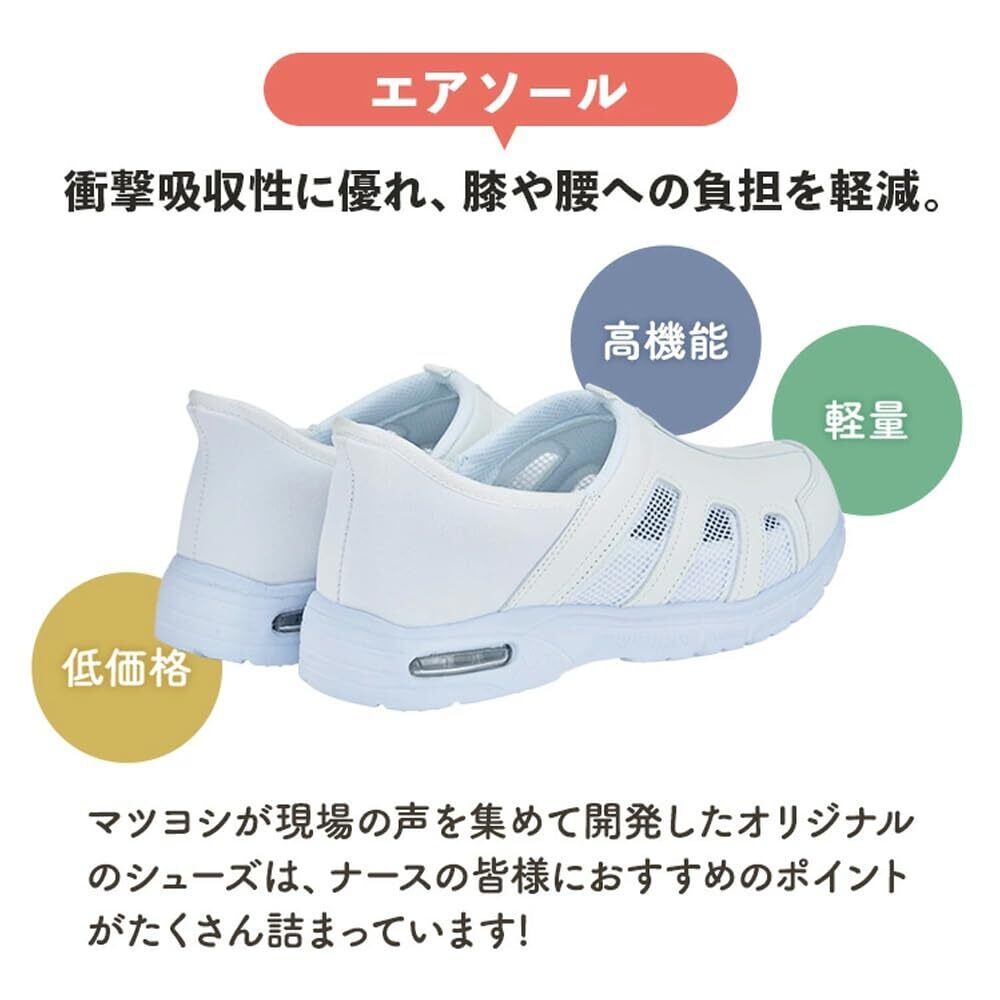 【2025最新】マツヨシ ユニセックス大人 NS1003_2立ったまま履ける ナースシューズ エアスリップ すぐ履ける 疲れにくい 軽量 エアソール クッション性 インソール メンズ レディース 男女兼用 メッシュ素材 ムレ防止 消臭 看護師 靴 看護シューズ
