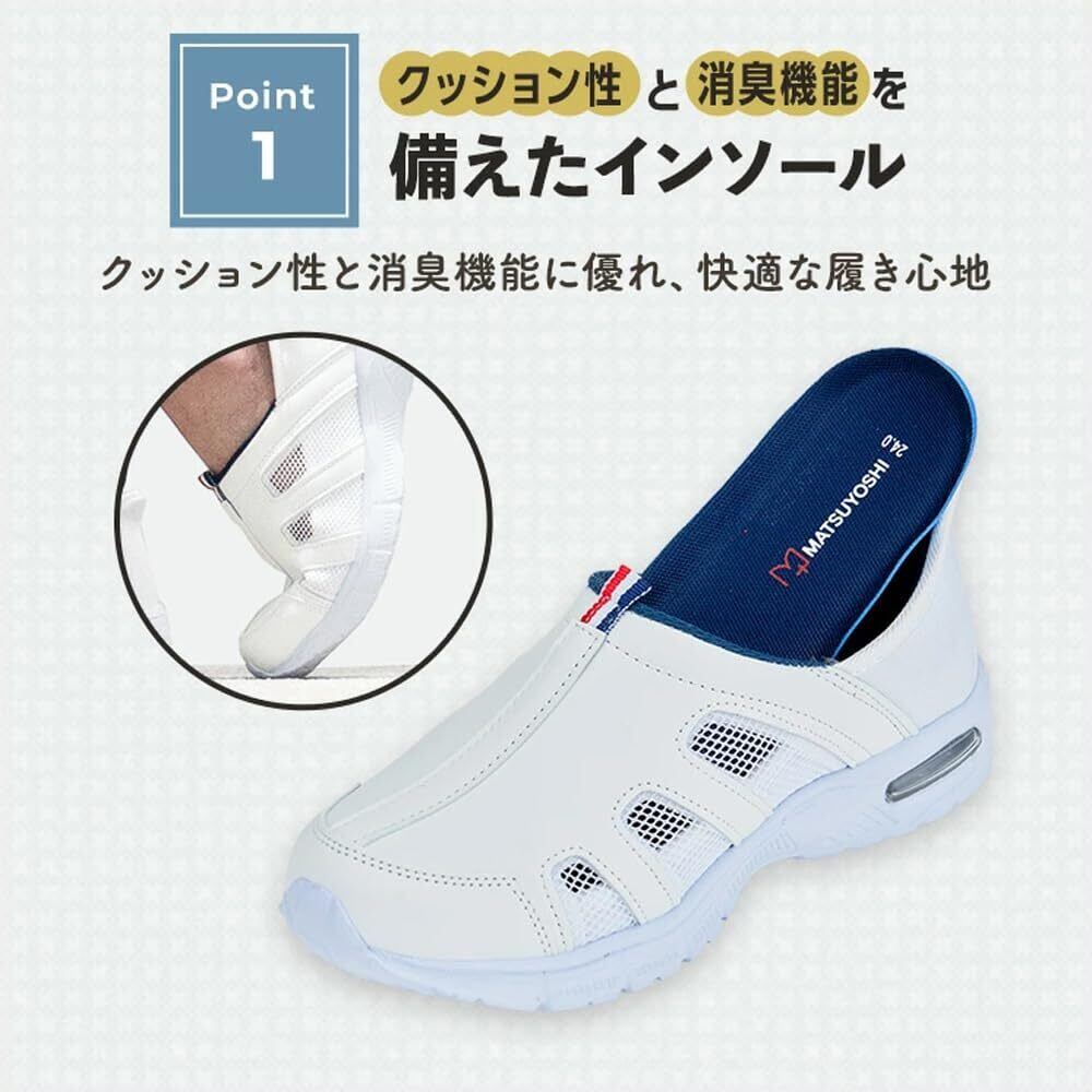 マツヨシ ユニセックス大人 NS1003_2立ったまま履ける ナースシューズ エアスリップ すぐ履ける 疲れにくい 軽量 エアソール クッション性 インソール メンズ レディース 男女兼用 メッシュ素材 ムレ防止 消臭 看護師 靴 看護シューズ