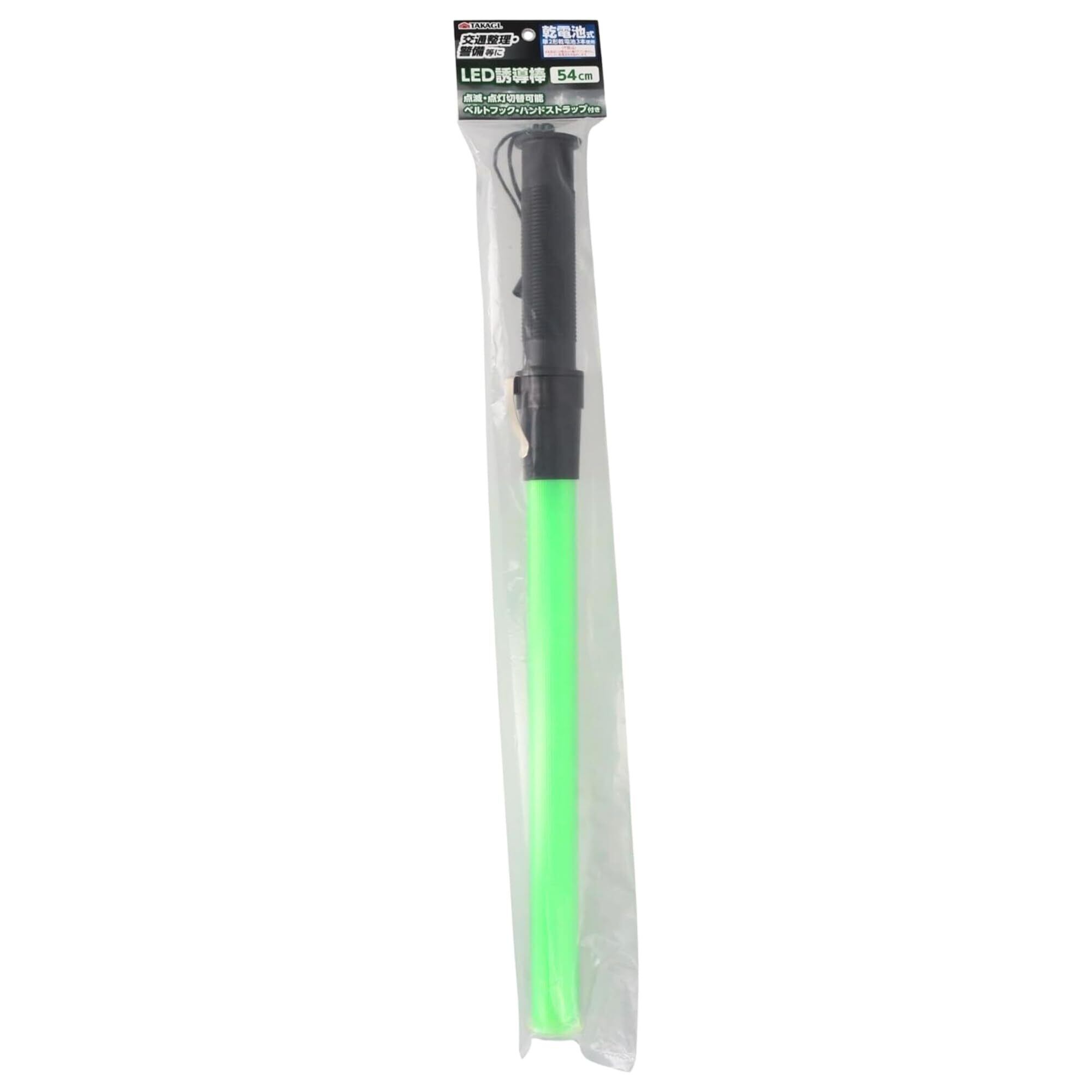 【2025最新】高儀 LED誘導棒 54cm 乾電池式 単2形乾電池 3本使用 グリーン×ブラック 点検 夜間 工事 交通整理 点滅・点灯切替可能 ベルトフック ハンドストラップ付き たかぎ