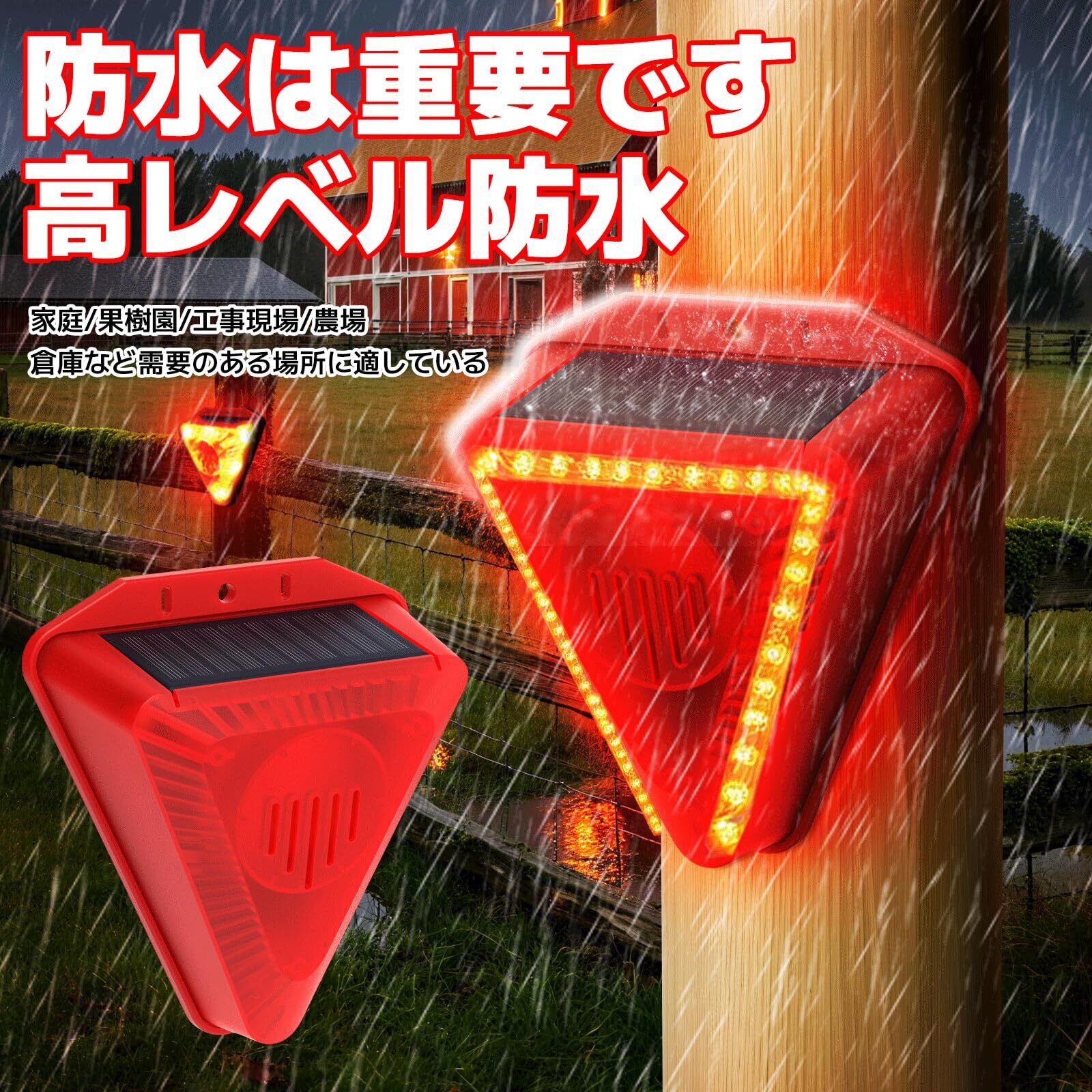 防犯アラーム 太陽警告灯 2個入 ソーラー充電 129db大音量 4つモード 防水 警報機 LED警告灯 点滅警報 ソーラーライト 昼夜両用 屋外 盗難防止 動物撃退 害獣撃退 警告アラーム 農家 工場 果樹園 茶園 倉庫 家用 (太陽警告灯/2個入)