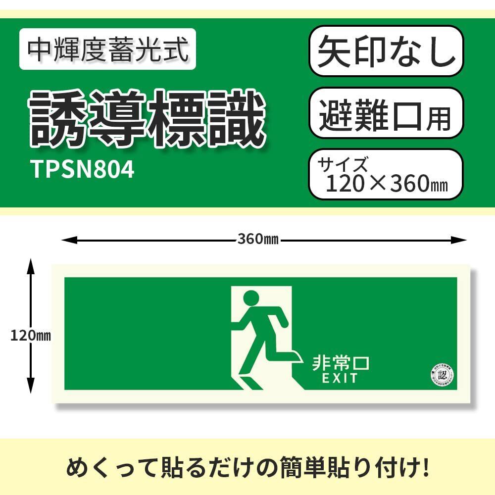 エルティーアイ 中輝度蓄光式誘導標識(消防認定品) 塩ビプレートタイプ(両面テープ付き) 通路誘導標識 12×36cm TPSN804