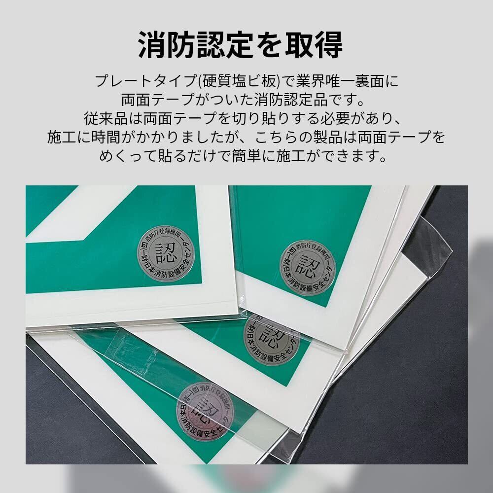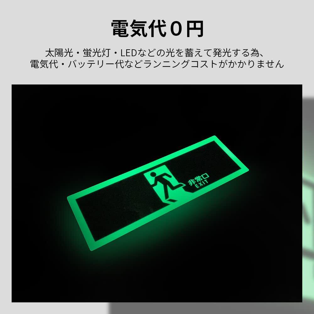 【特徴】室内や太陽の光を蓄え、暗くなると光る蓄光式誘導標識です。裏面に両面テープが付いたプレートタイプ(硬質塩ビ板)。電気代がかからない蓄光式です。