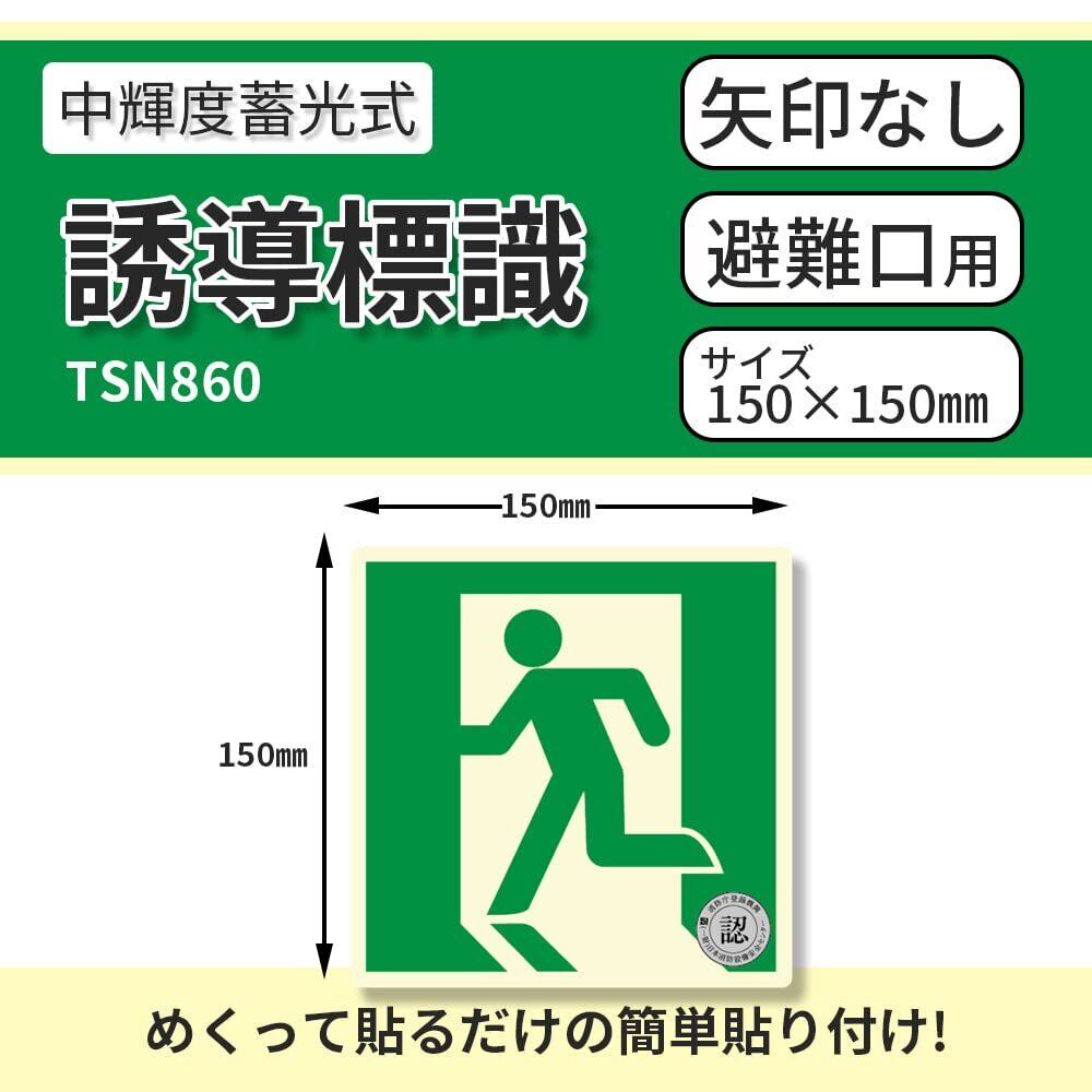 エルティーアイ 防災対策 消防認定品 中輝度蓄光式誘導標識 TSNシリーズ 150mm角 非常口 TSN860