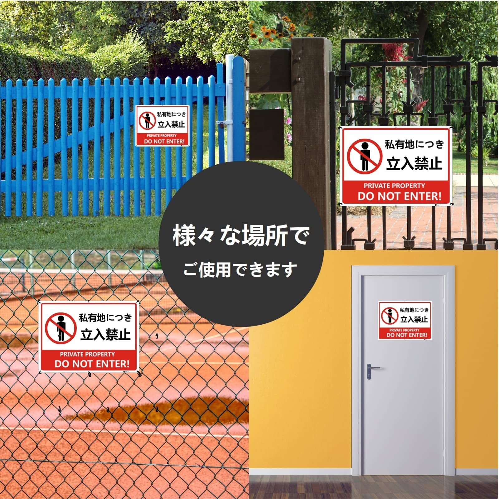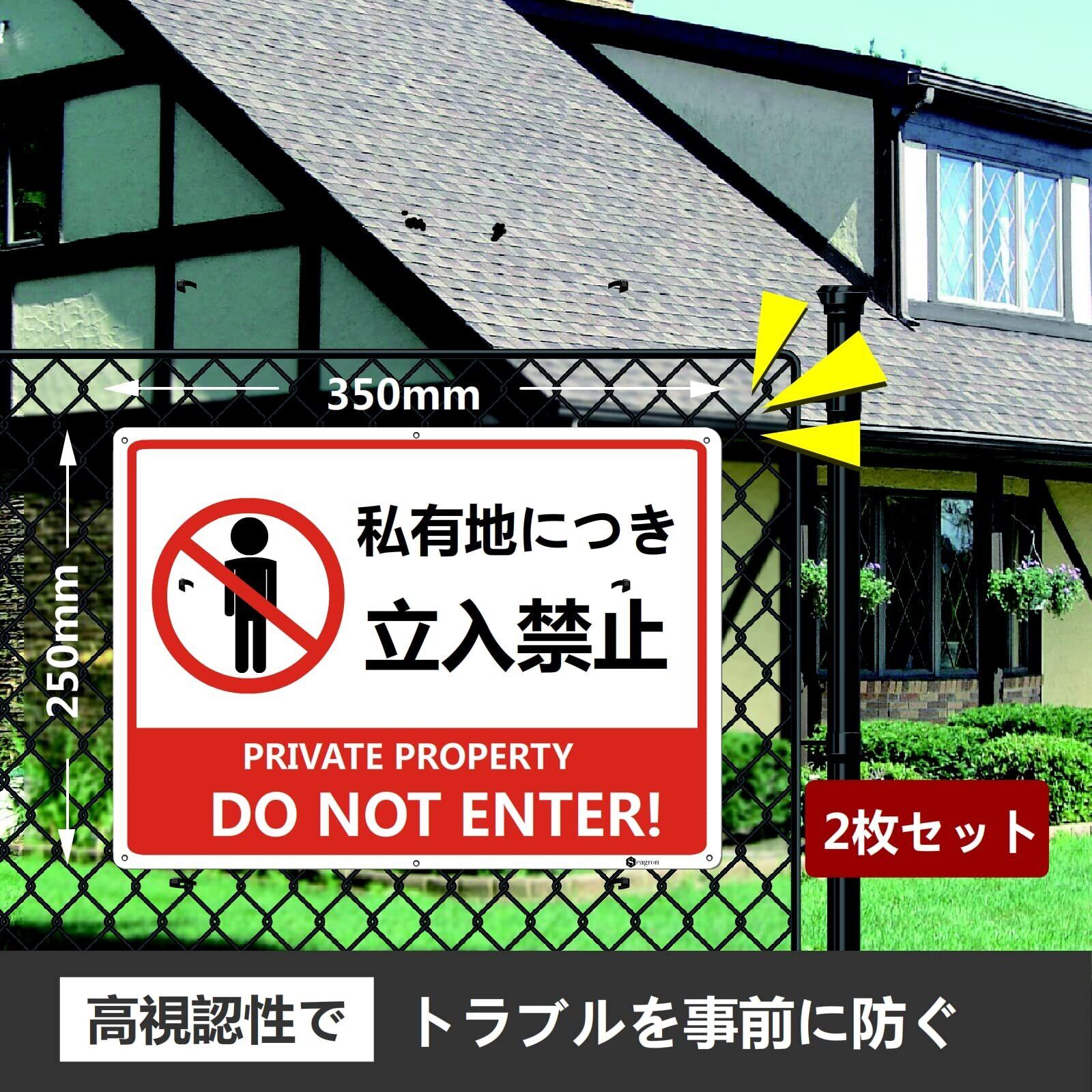 私有地につき 立入禁止 看板 プレート 立ち入り禁止 厳禁 お断り 注意看板 【Mサイズ】警告サイン 安全標識 軽量 1mmアルミ製 25cm×35cm 防水 屋外 2枚セット ヨコ型 KAN01B