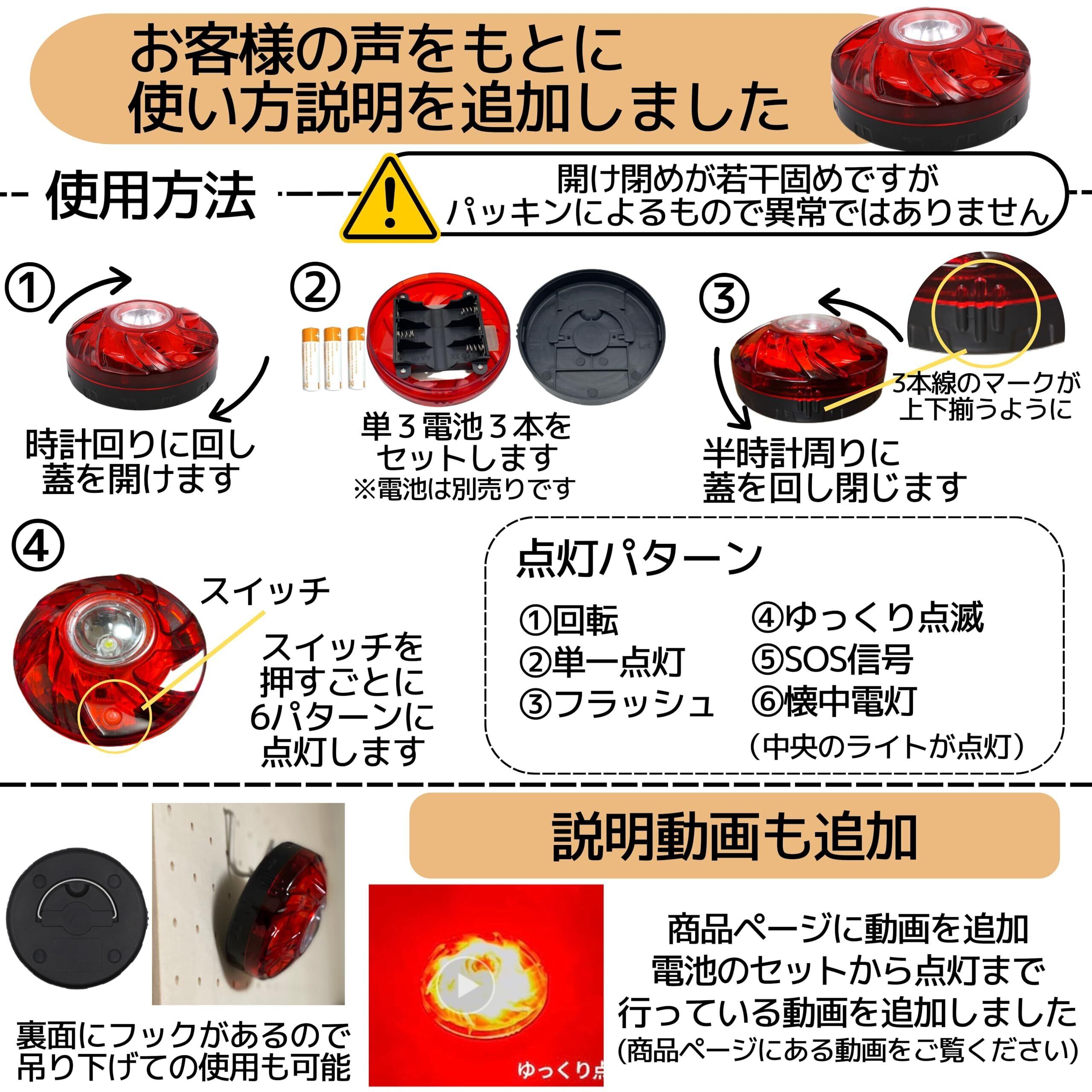 【簡単な使用方法】 使用方法は画像・動画をご確認ください。簡単な操作で、手軽にLED警告灯を活用できます。