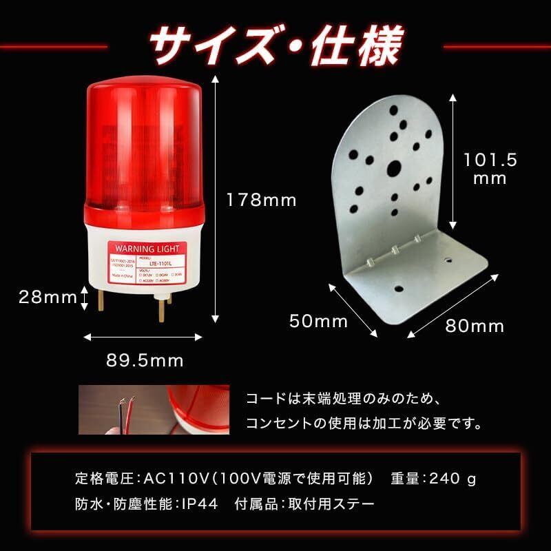 回転灯 【 赤 LED 100V 対応 音あり 90db 】 非常信号灯 赤色灯 パトランプ 【 PSE認証 】 壁面取り付け金具付き ストロボライト DeepMoon